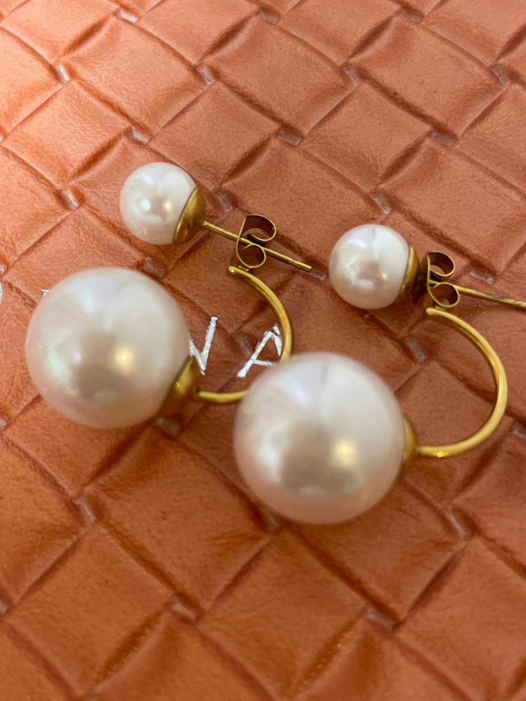 フロントとバックに異なるサイズのパールをあしらい、どの角度から見ても華やかな印象に。