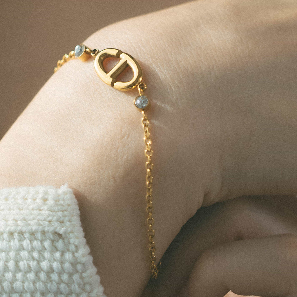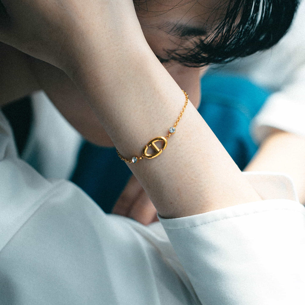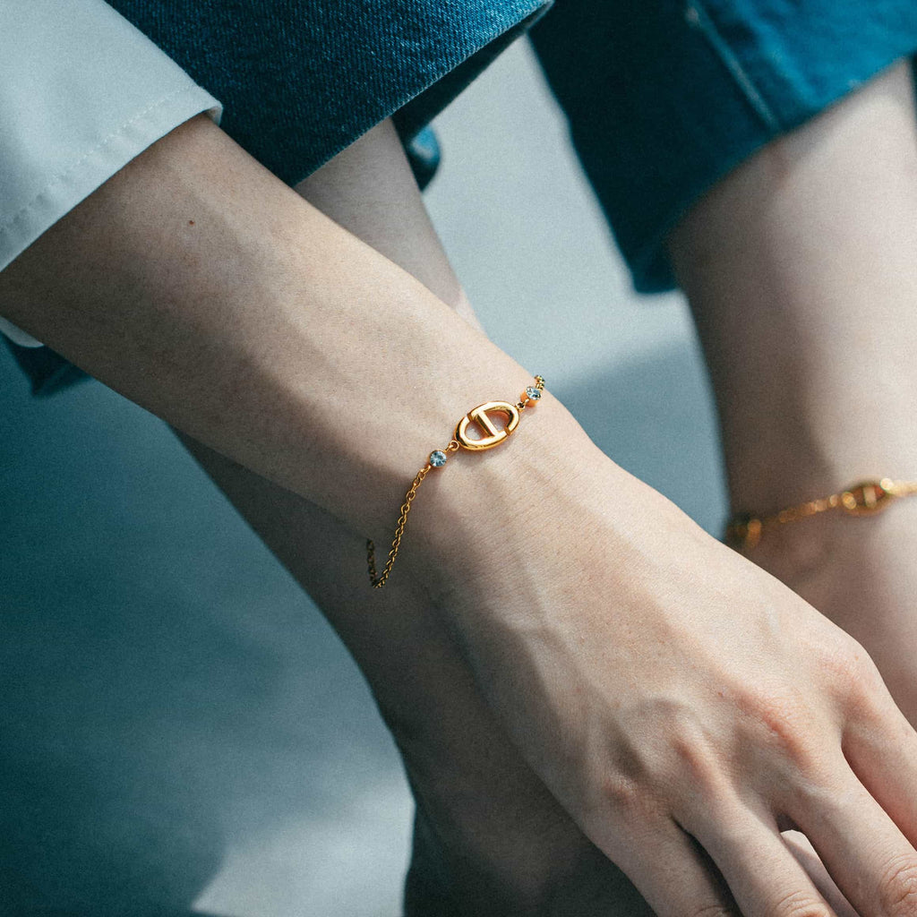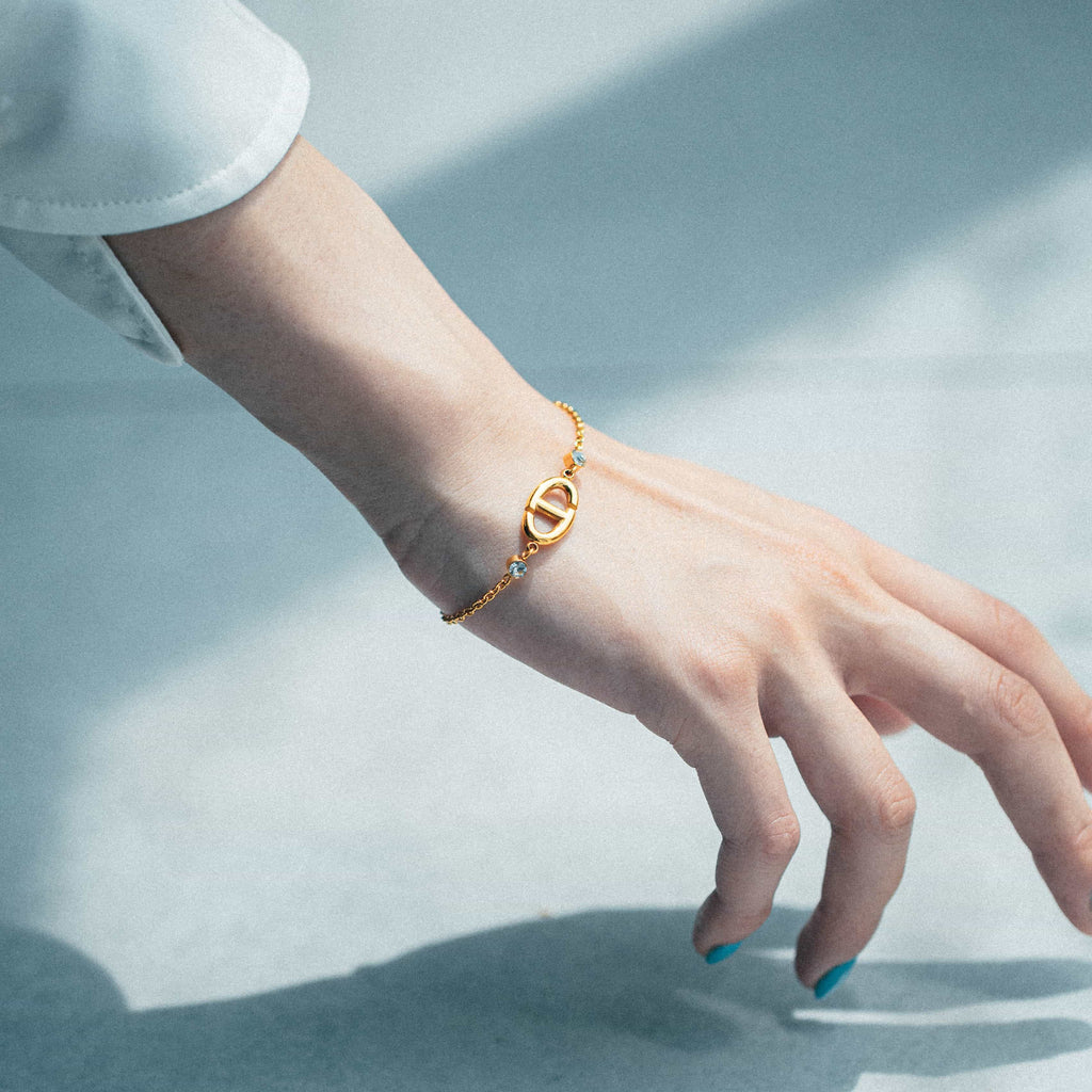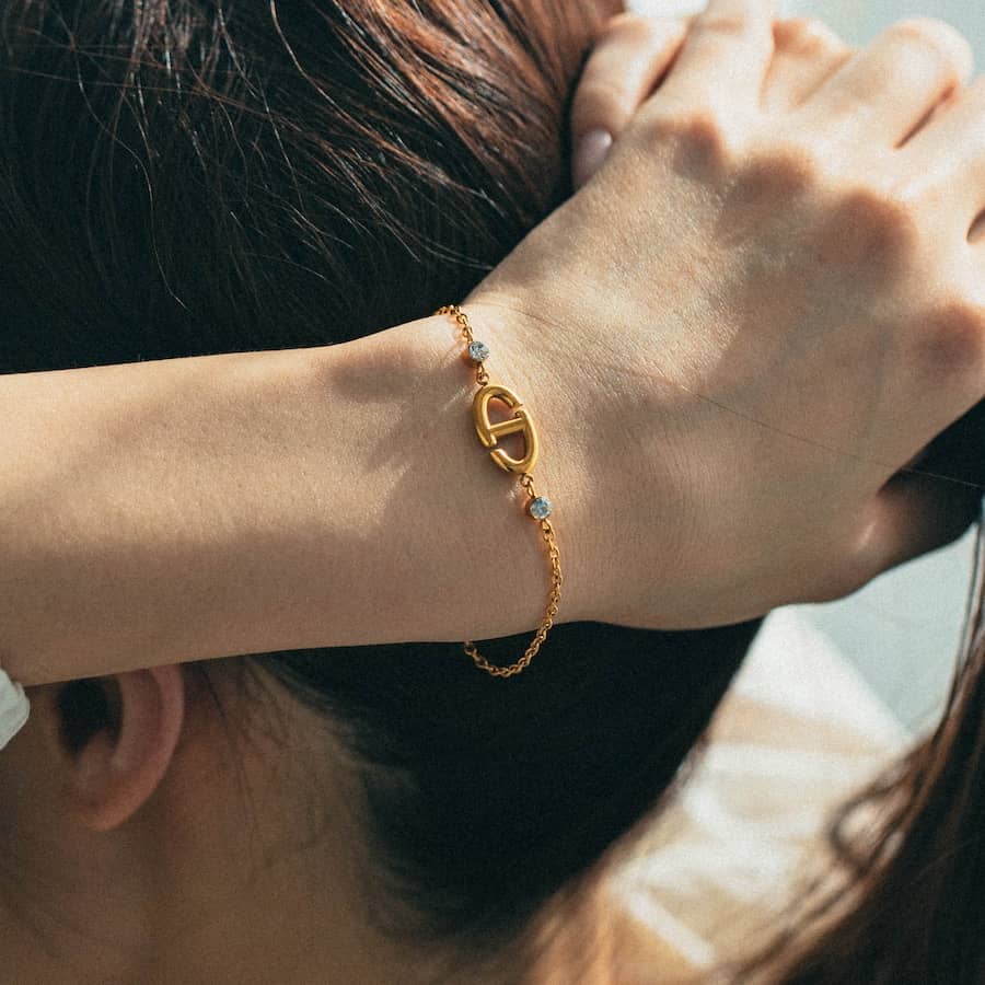 アンカーモチーフに輝くクリスタルが、手元に洗練された美しさをプラスします。