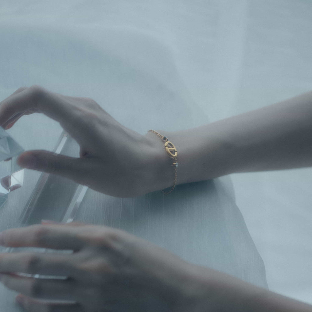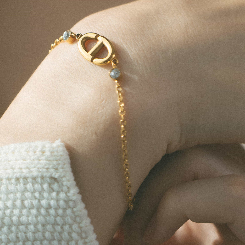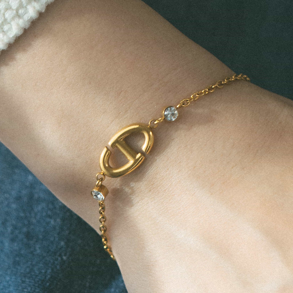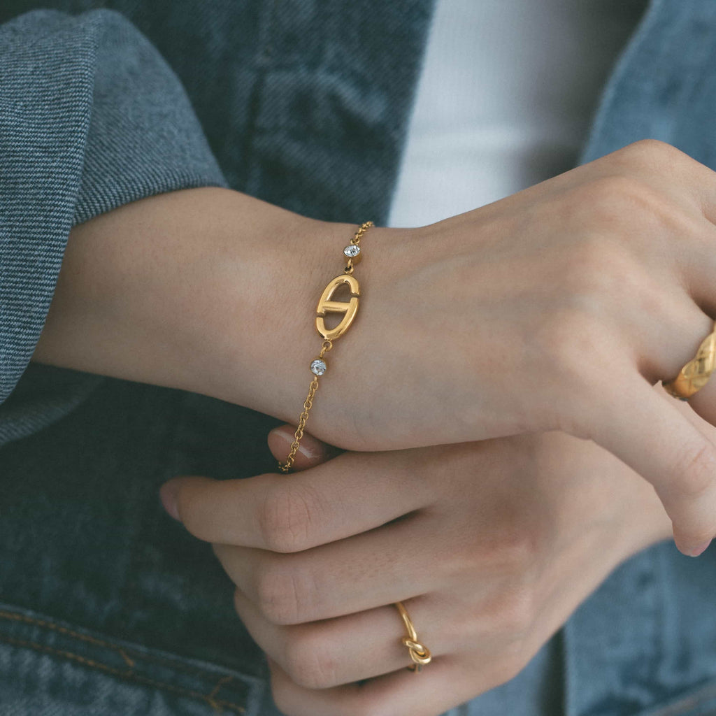 アンカーモチーフに輝くクリスタルが、手元に洗練された美しさをプラスします。