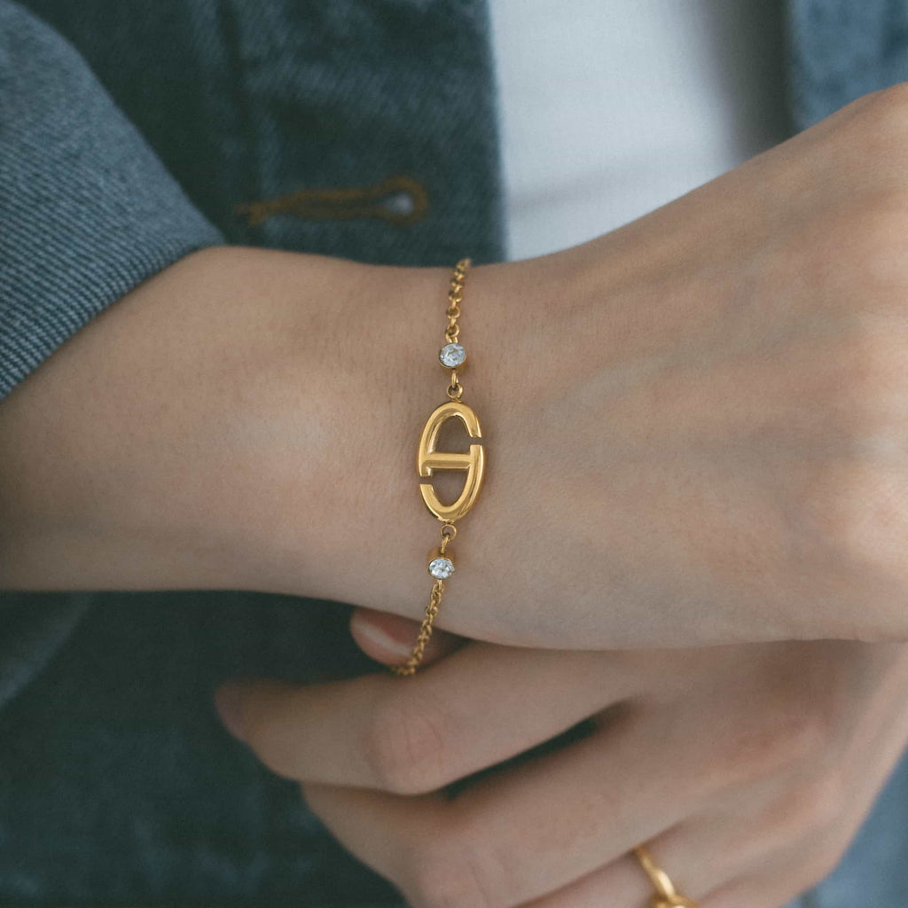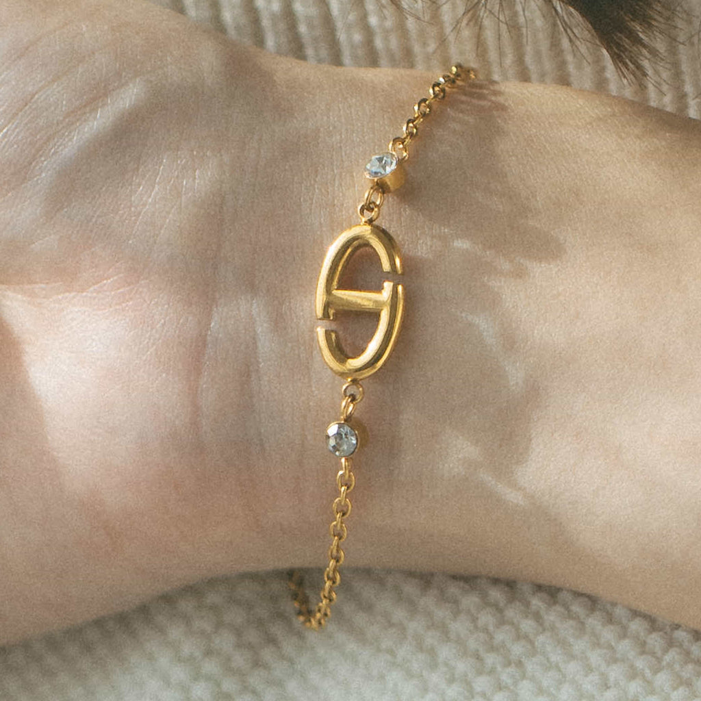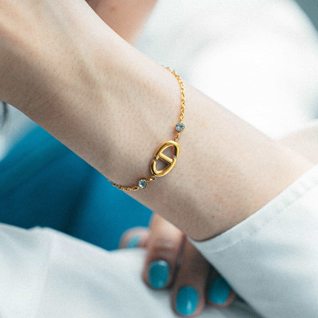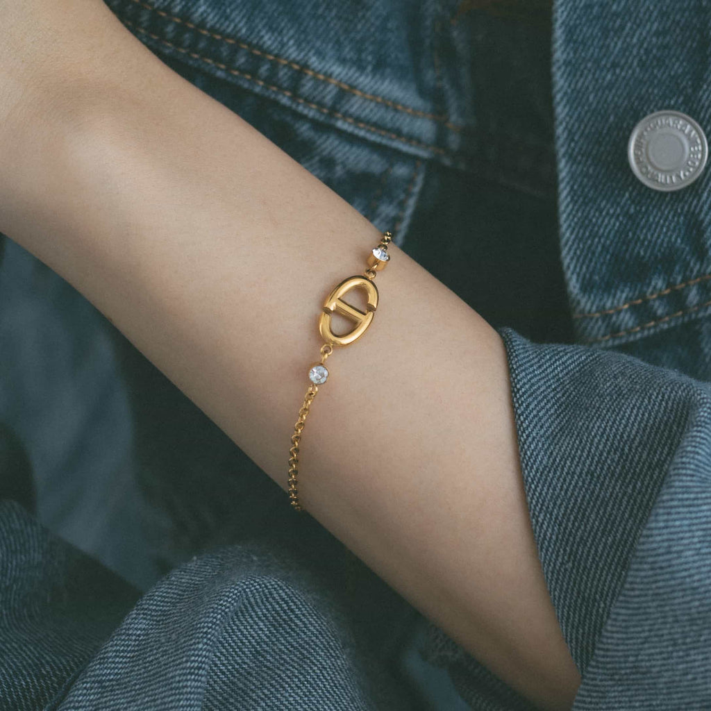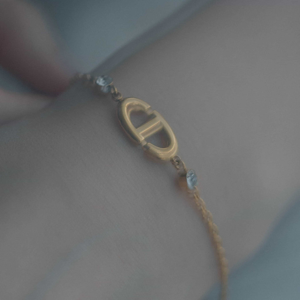 アンカーモチーフに輝くクリスタルが、手元に洗練された美しさをプラスします。
