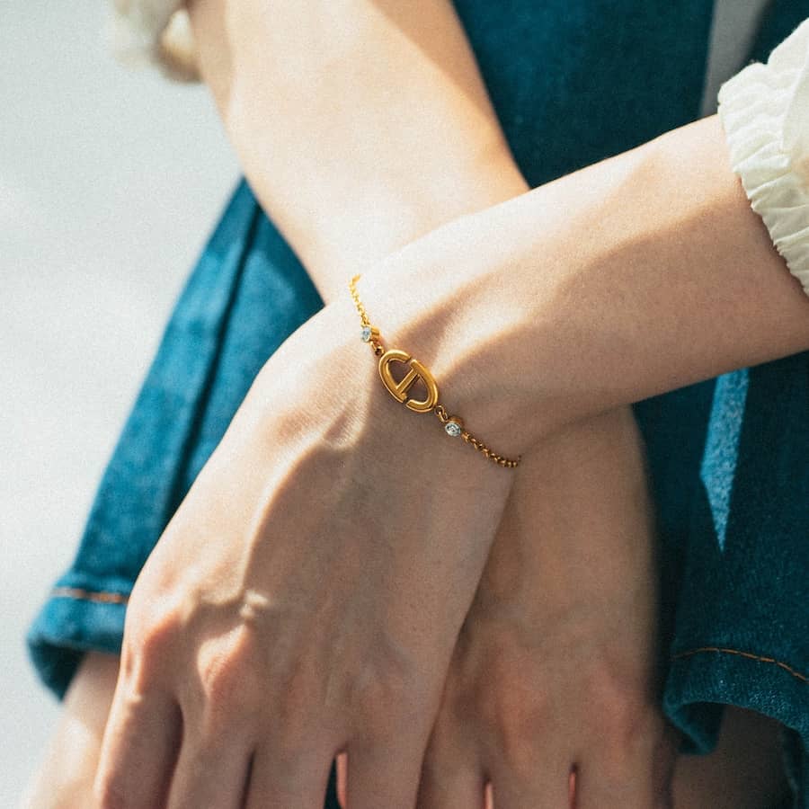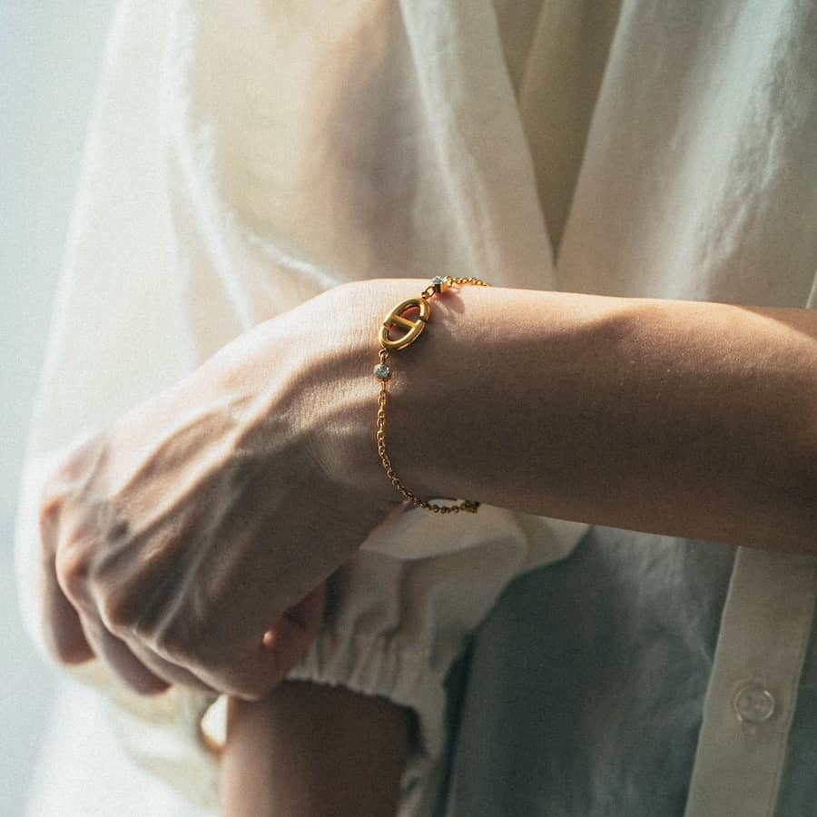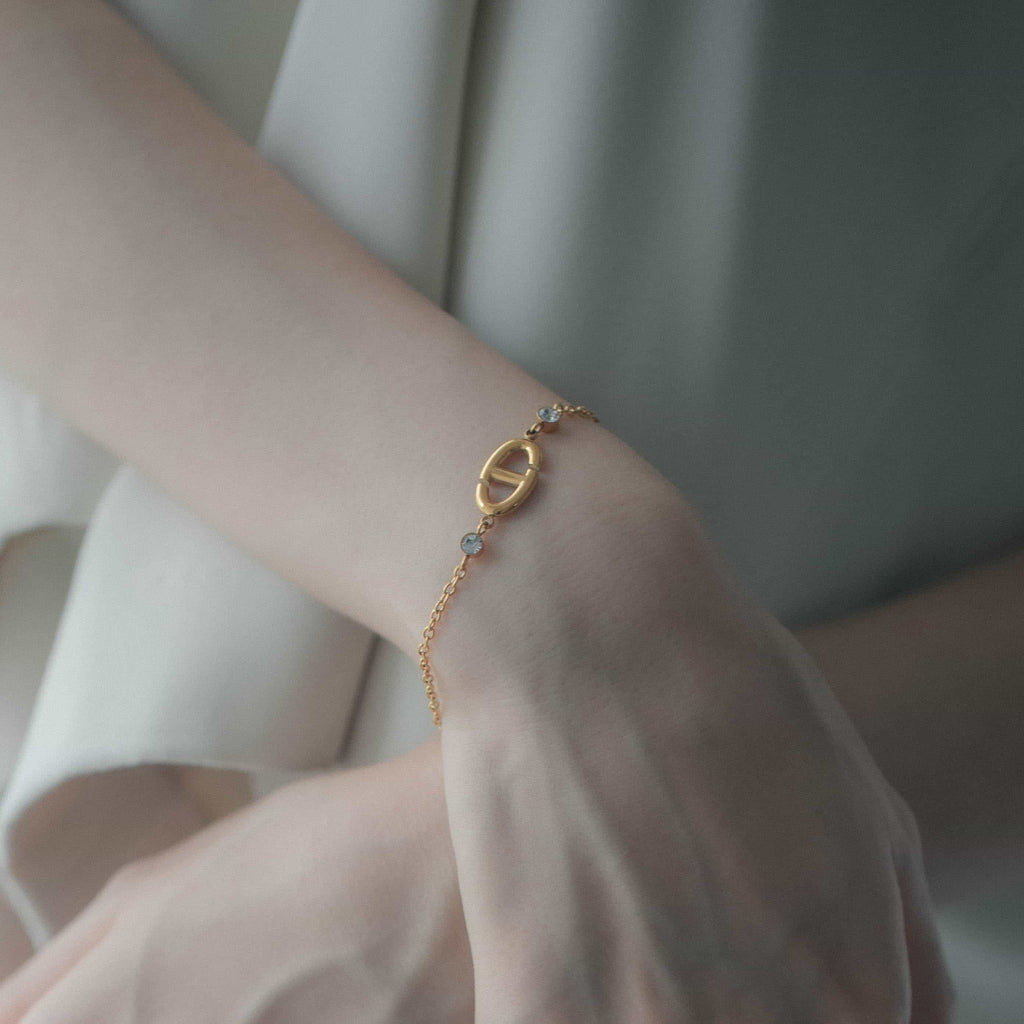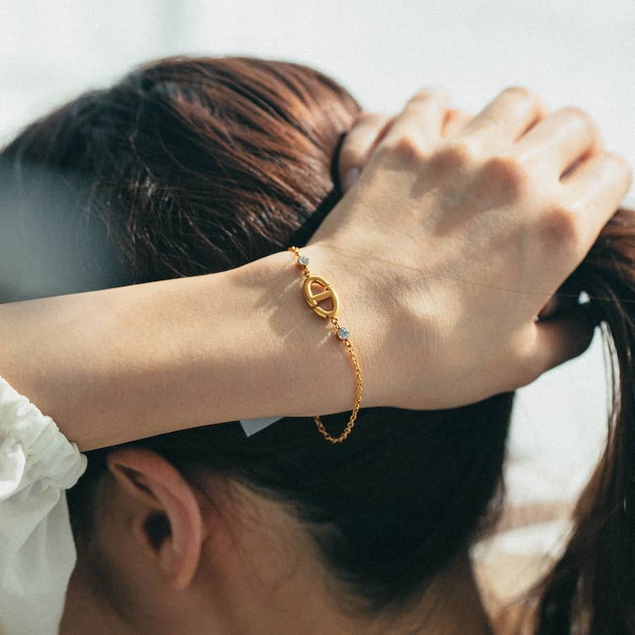 繊細で上品なデザインが魅力のゴールドブレスレット。