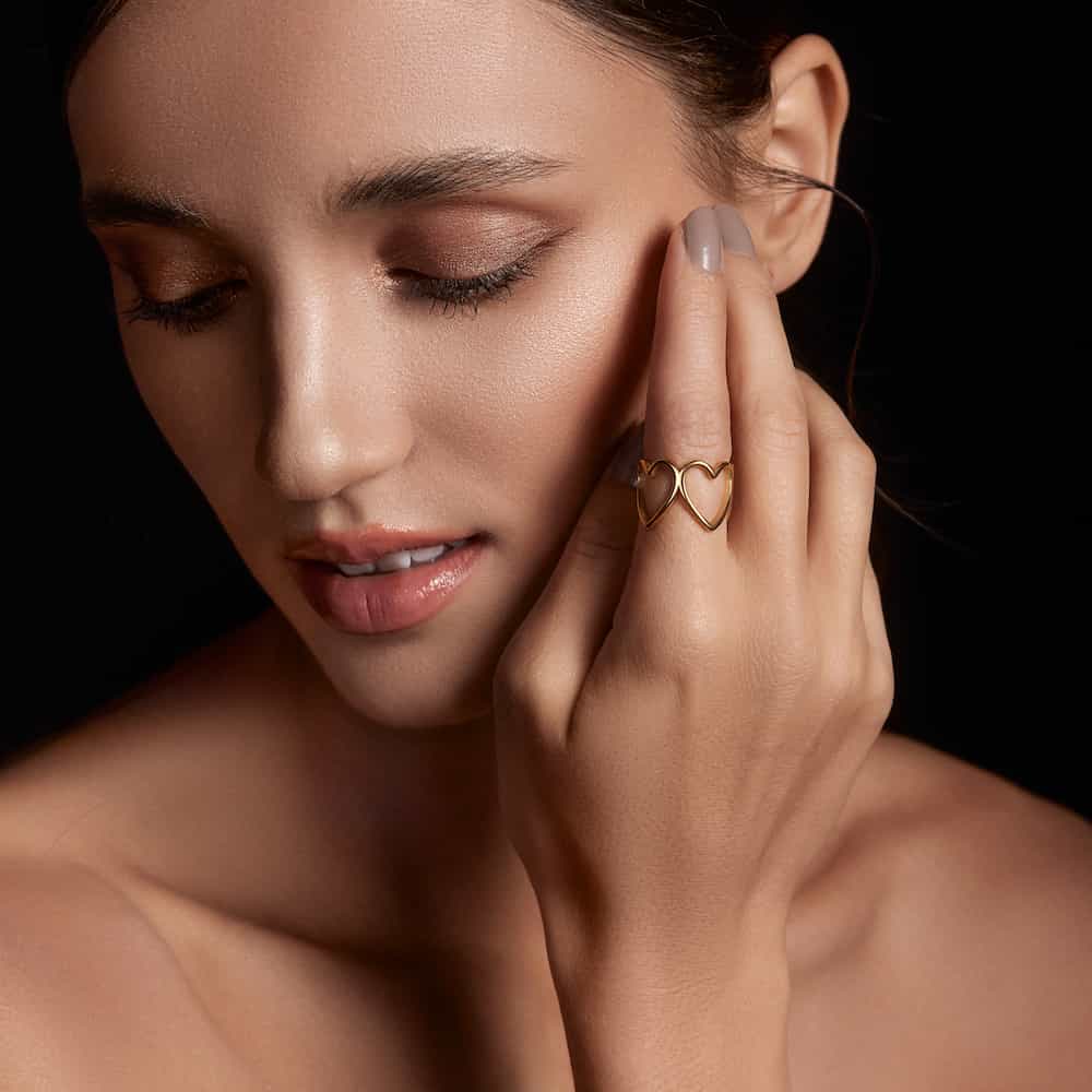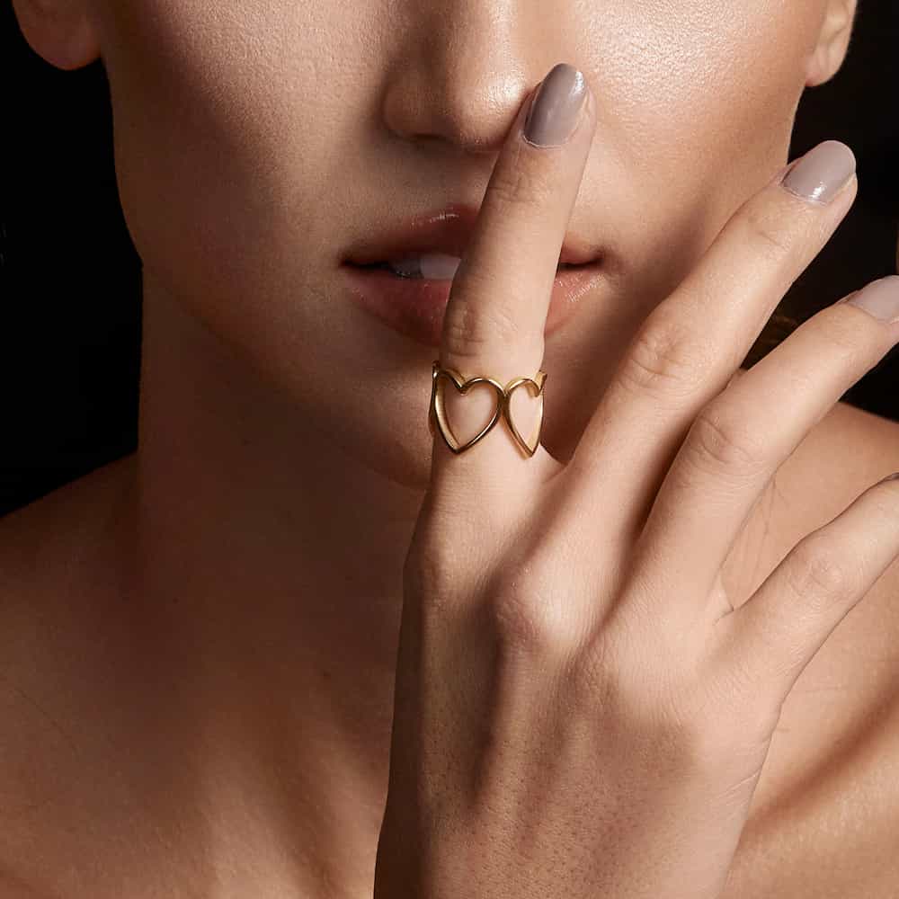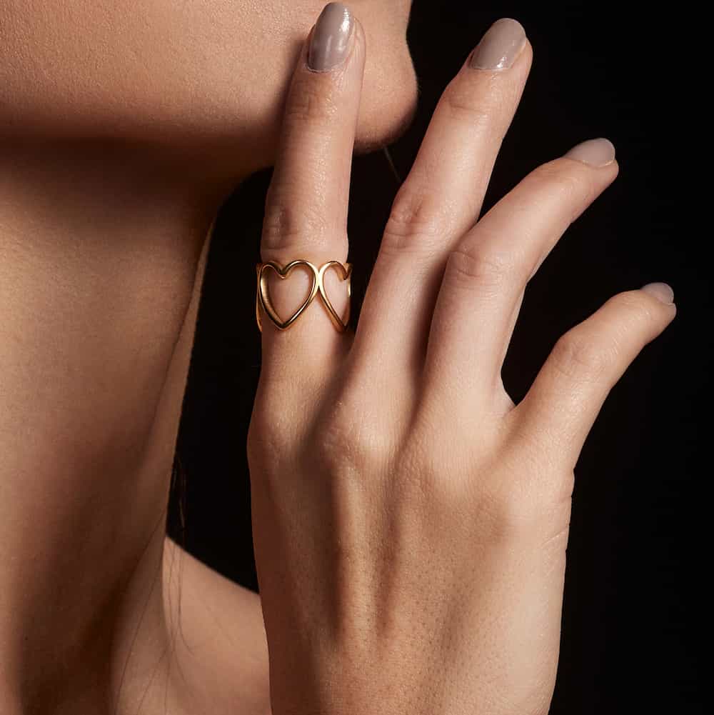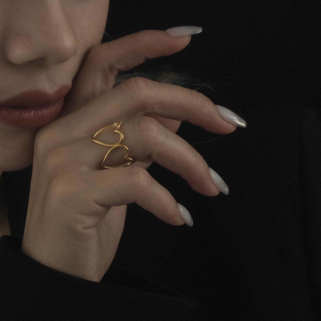 A ring with a series of simple and cute hearts that creates a mature and mature atmosphere.