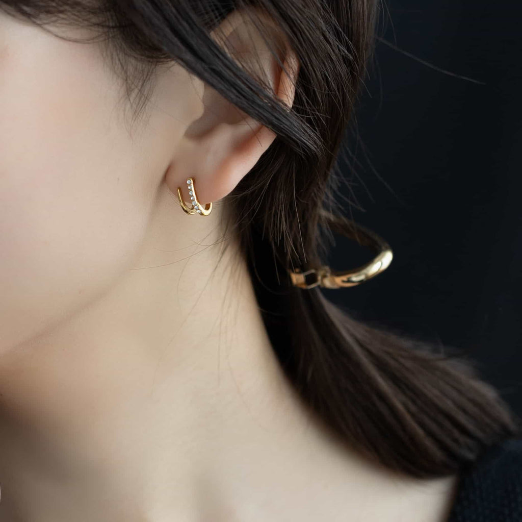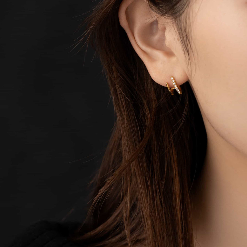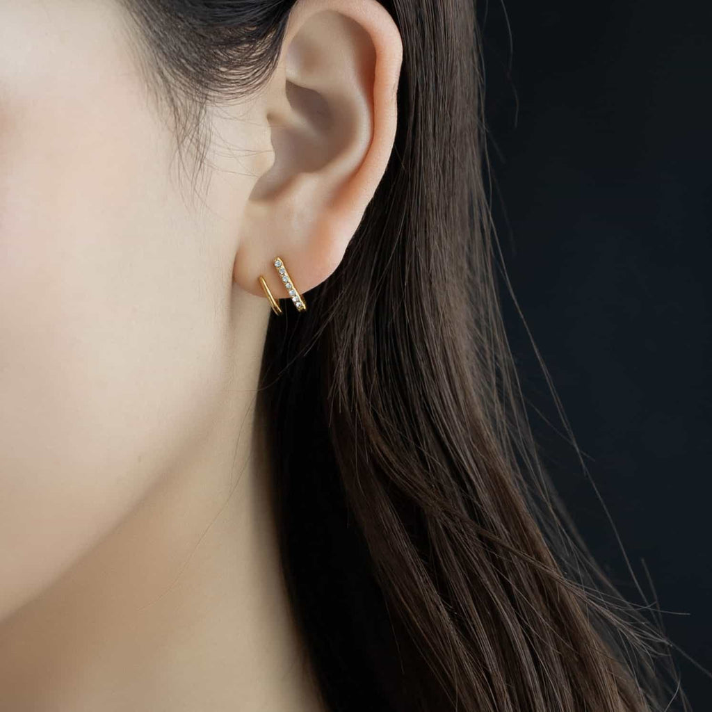 さりげない華やかさを耳元に添える、ジルコニアラインピアス。