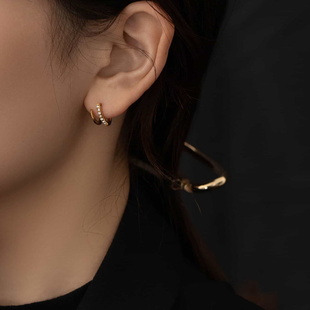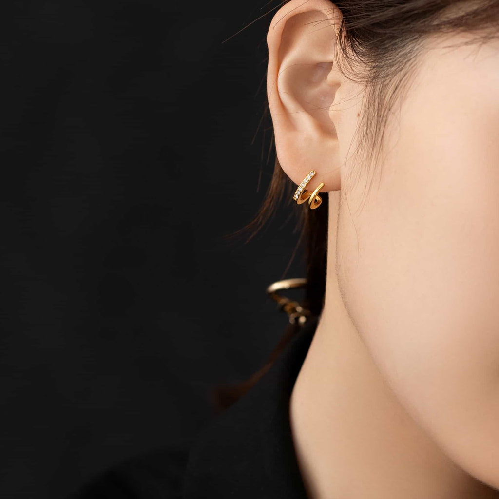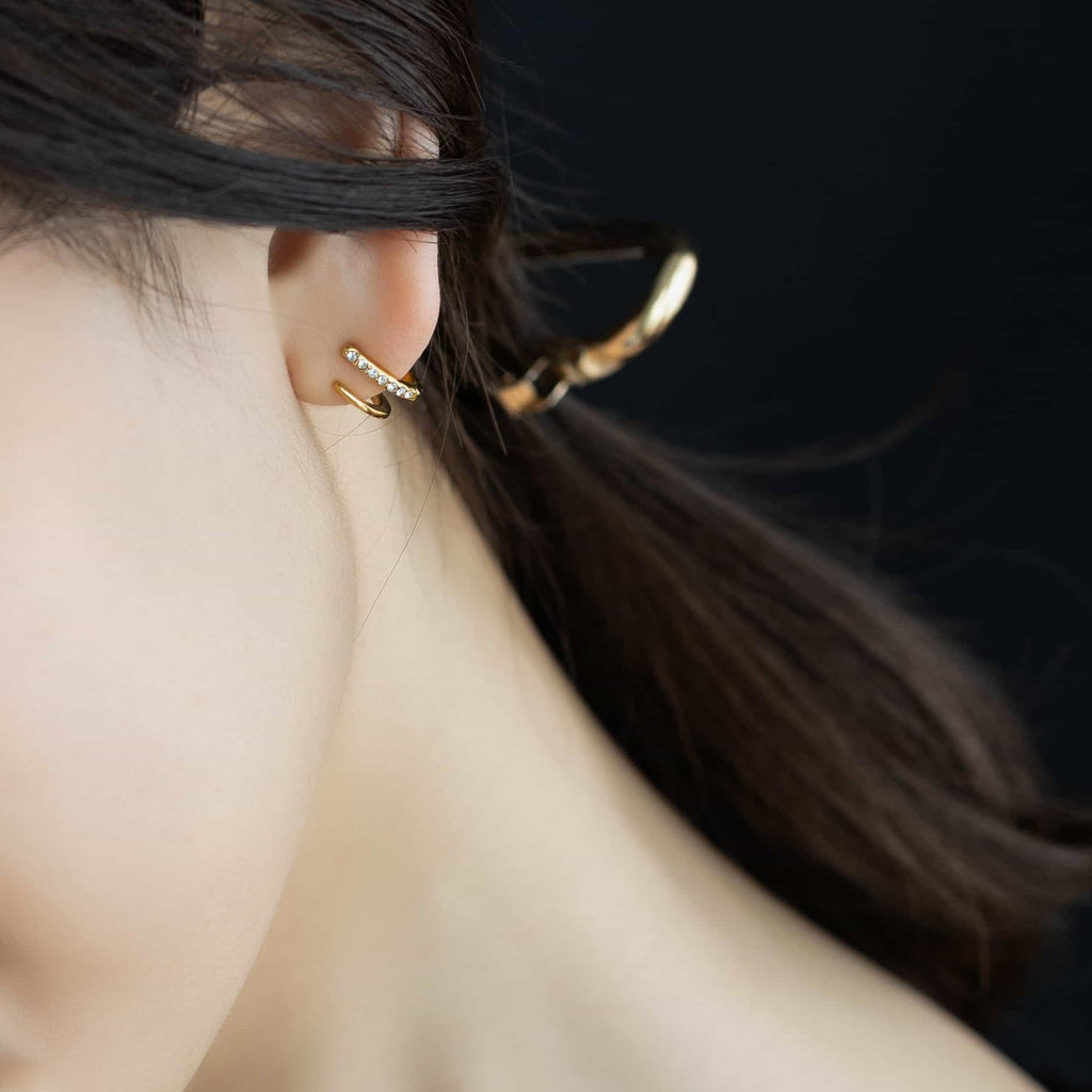 さりげない華やかさを耳元に添える、ジルコニアラインピアス。