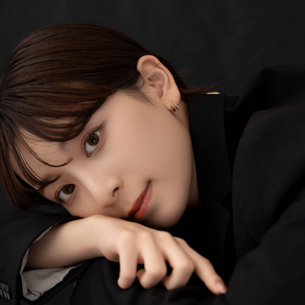 ゴールドカラーのベースが肌に自然に馴染み、耳元を明るく見せてくれます。