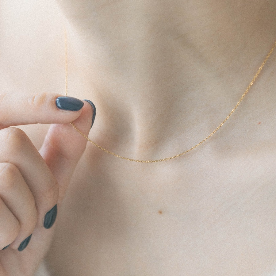 ミラーカットを施したデザインチェーンが、首元に華やかなきらめきを添えるネックレス。