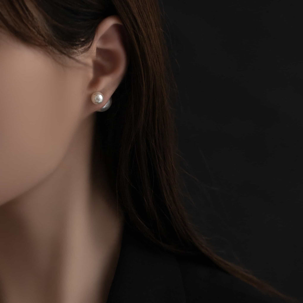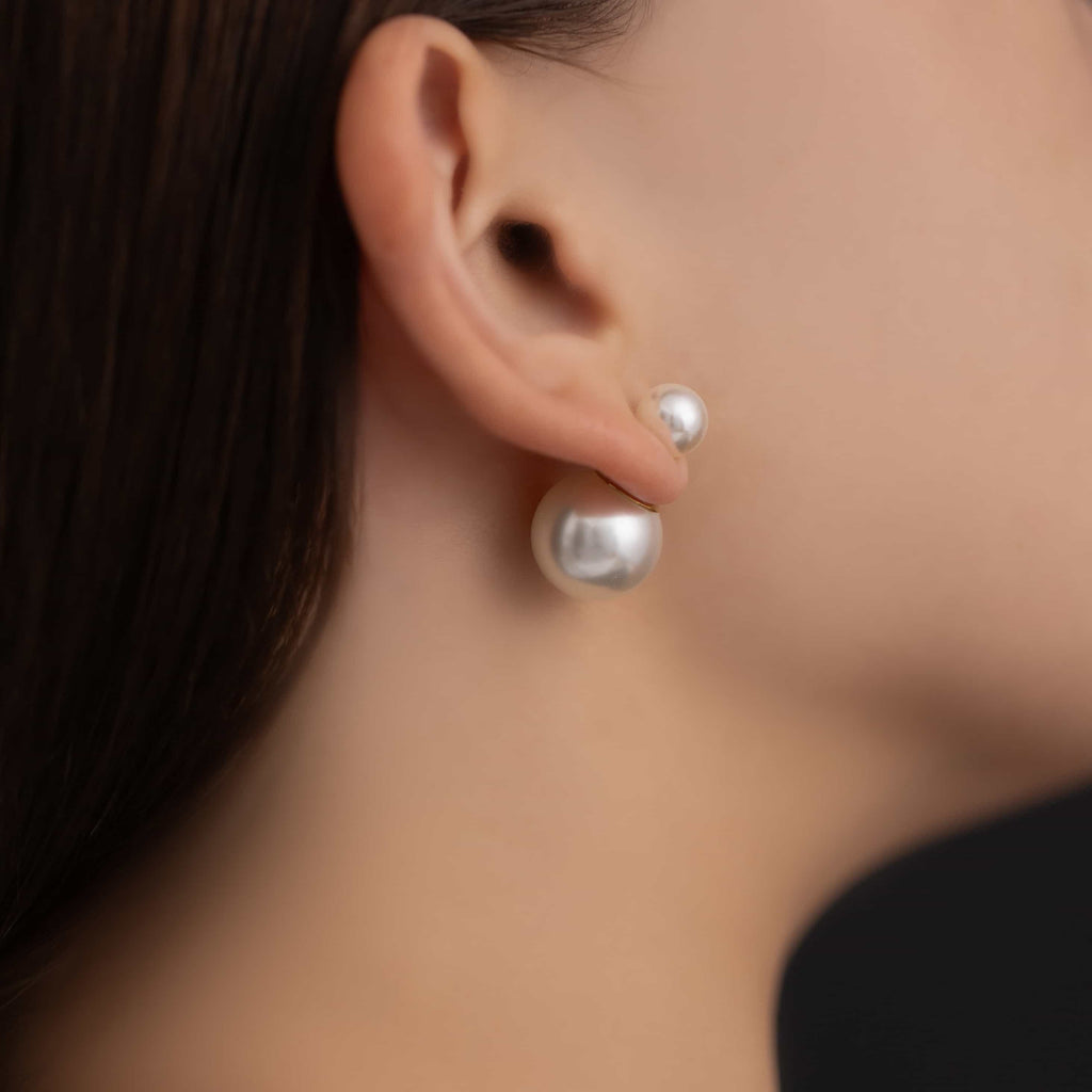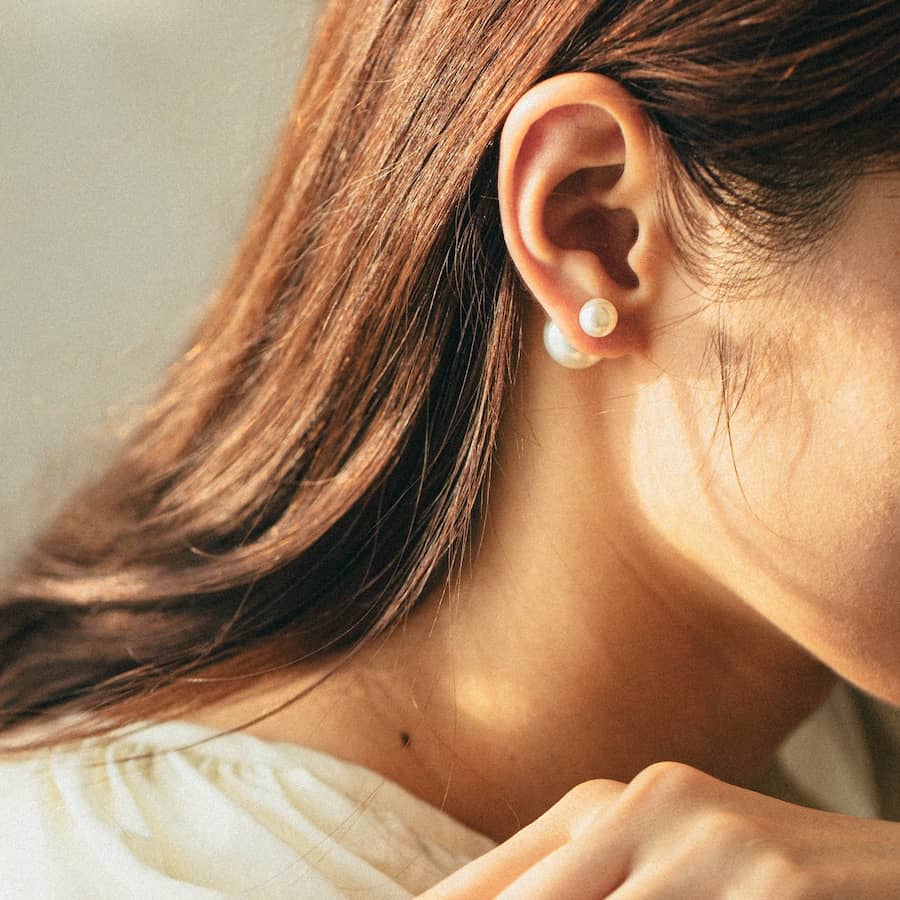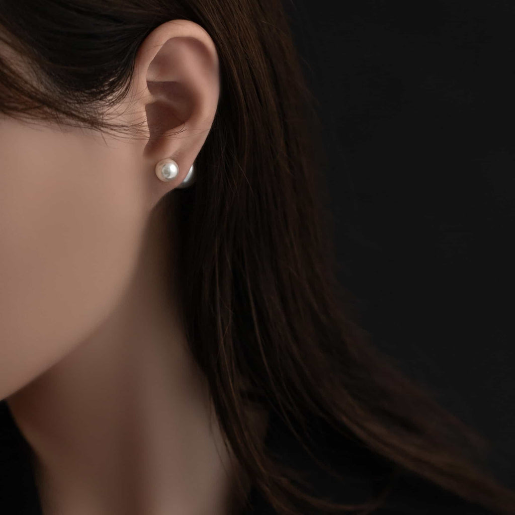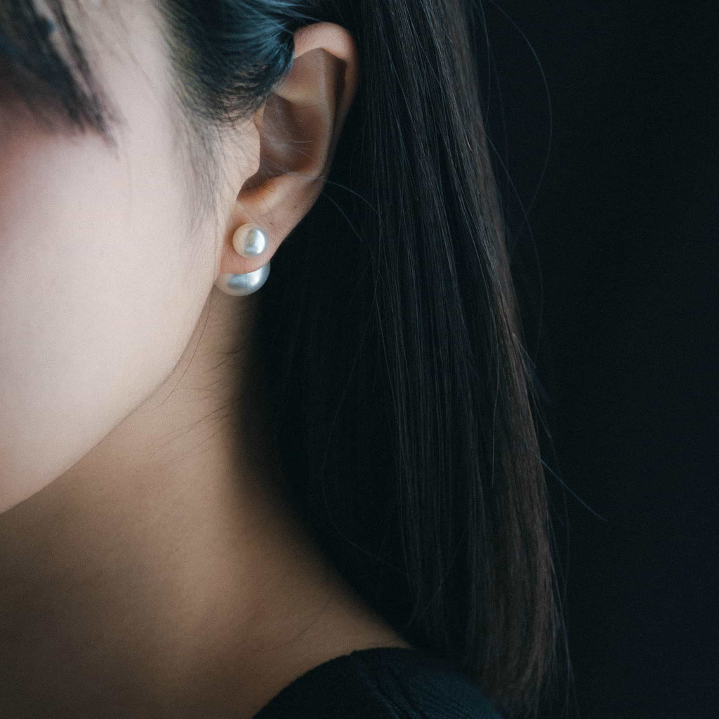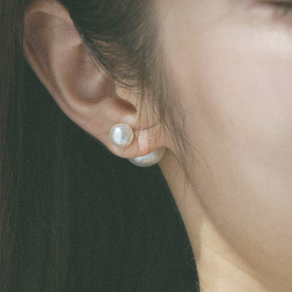 トップだけではなくキャッチもパールのダブルピアスは、呼ばれて振り向くそのすべての瞬間に上品な印象を与えます。