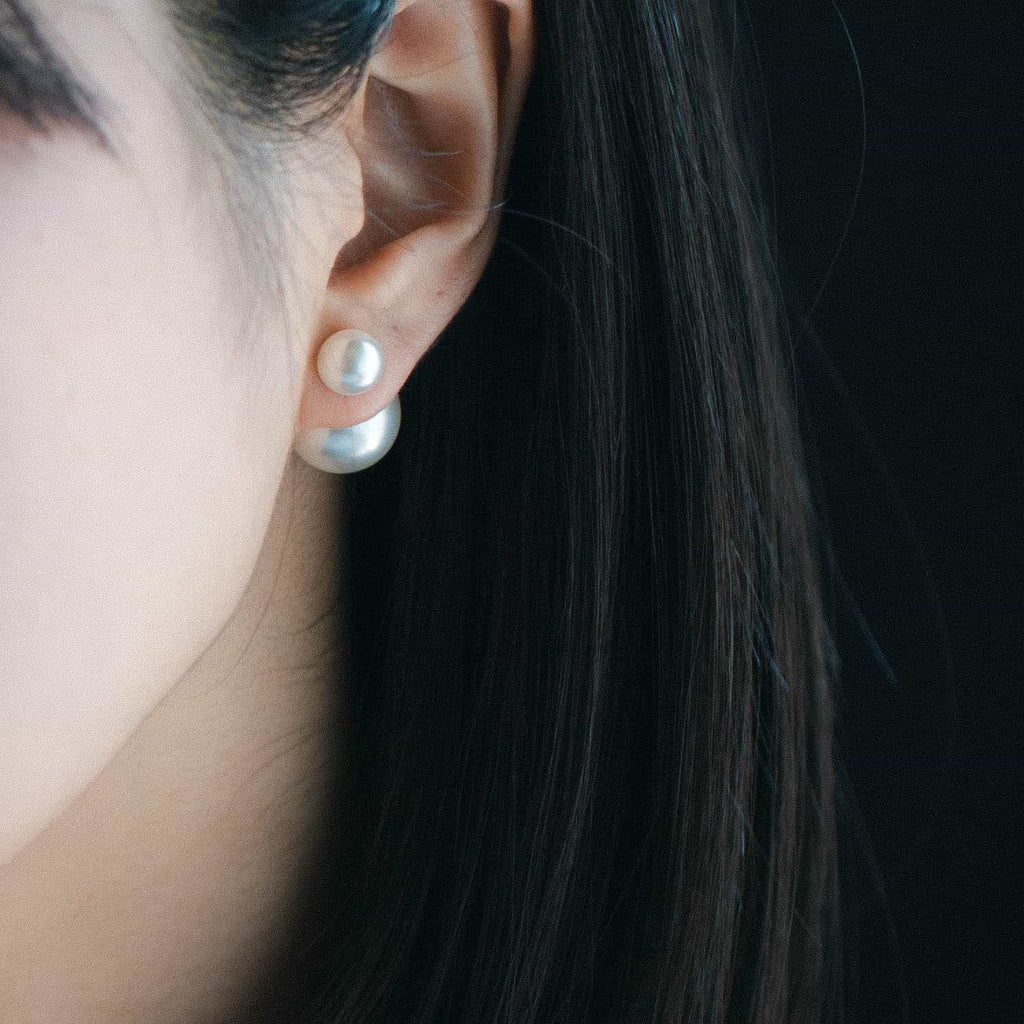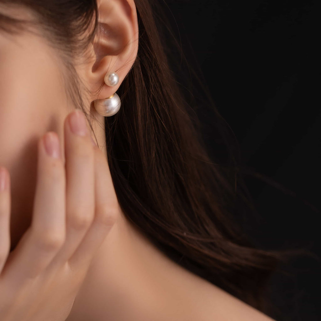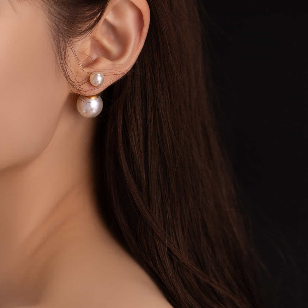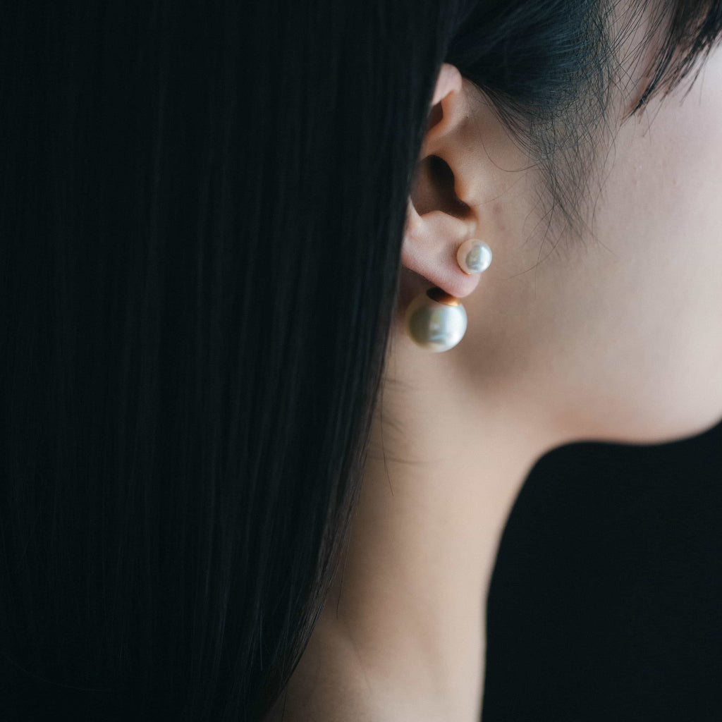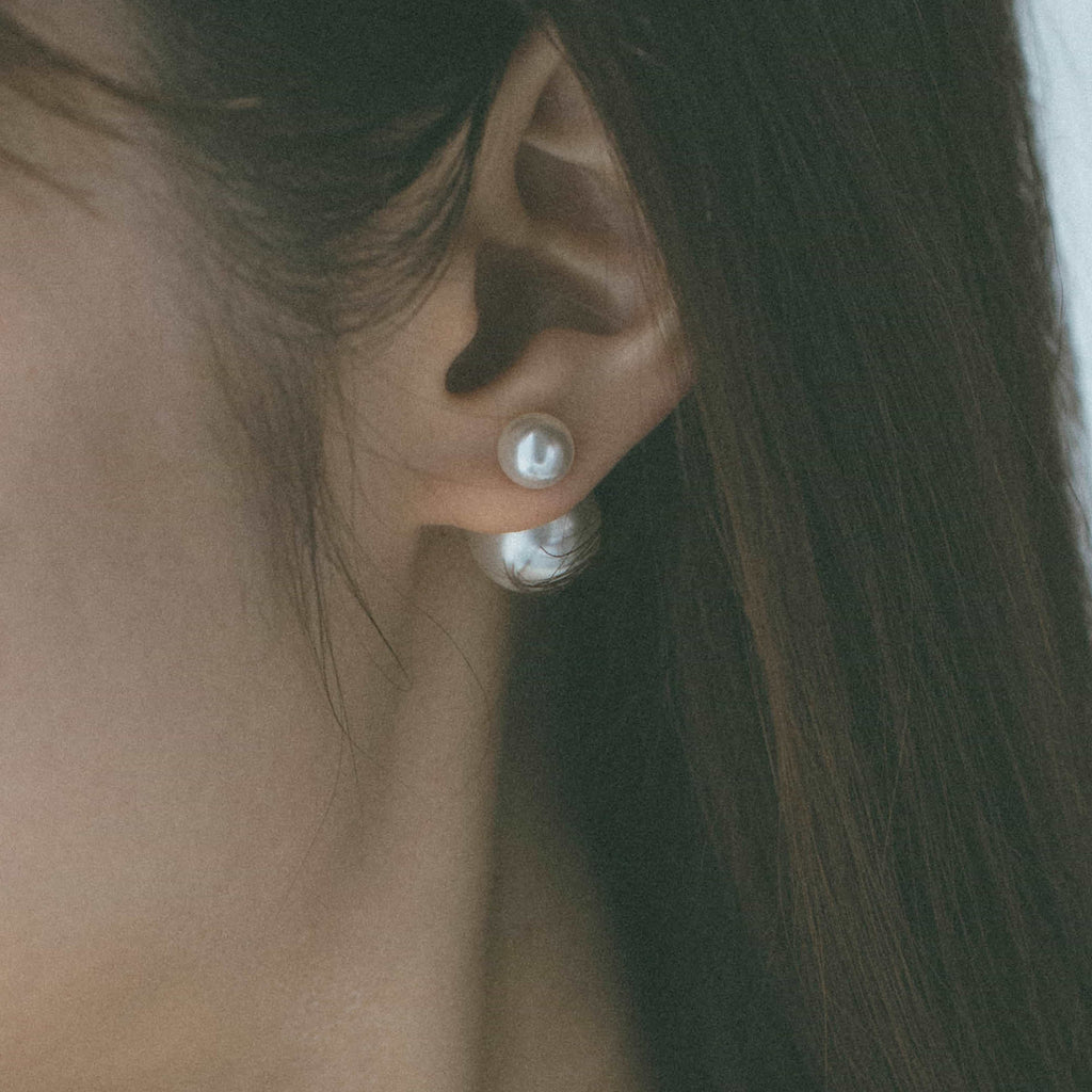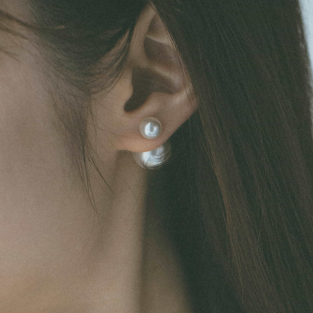 トップだけではなくキャッチもパールのダブルピアスは、呼ばれて振り向くそのすべての瞬間に上品な印象を与えます。