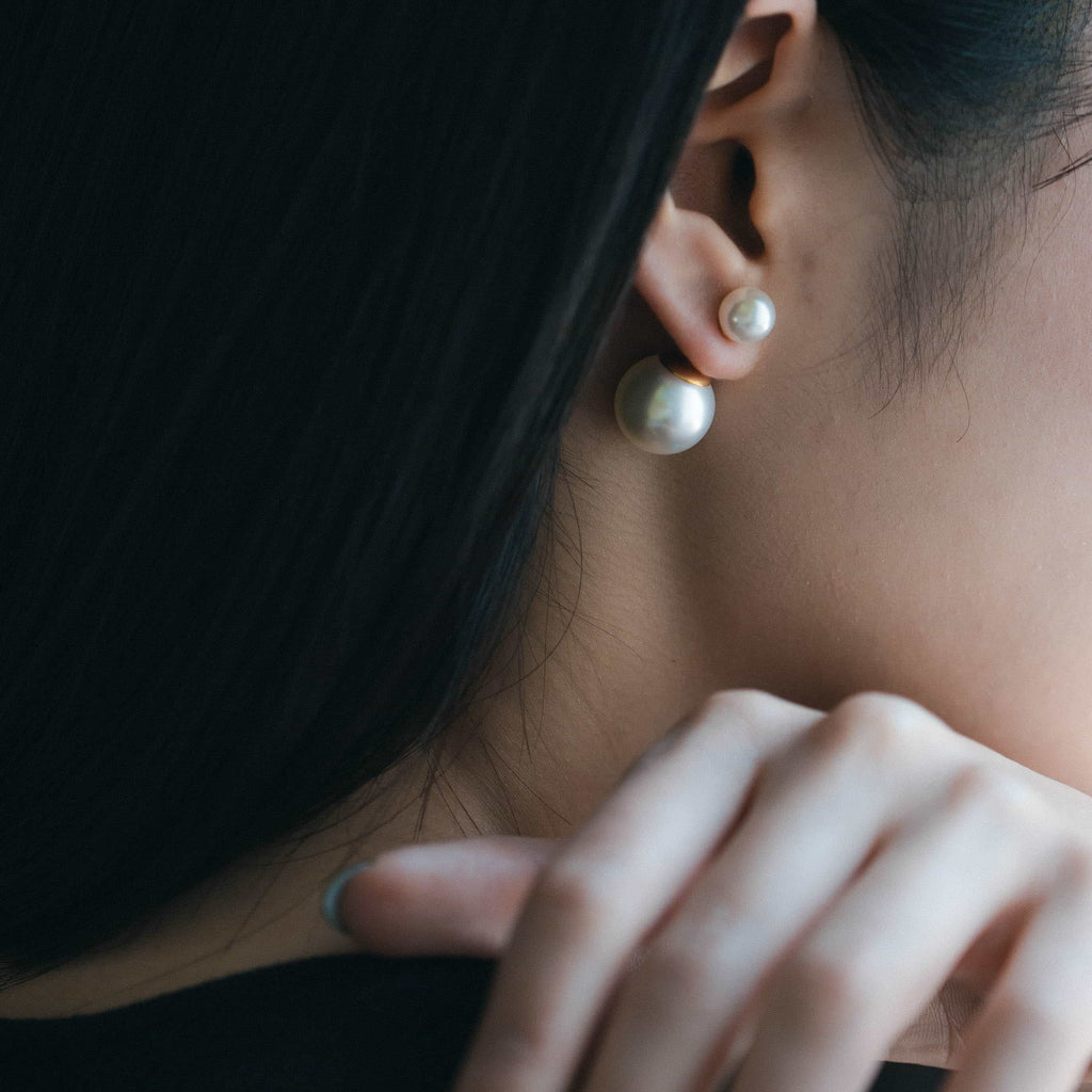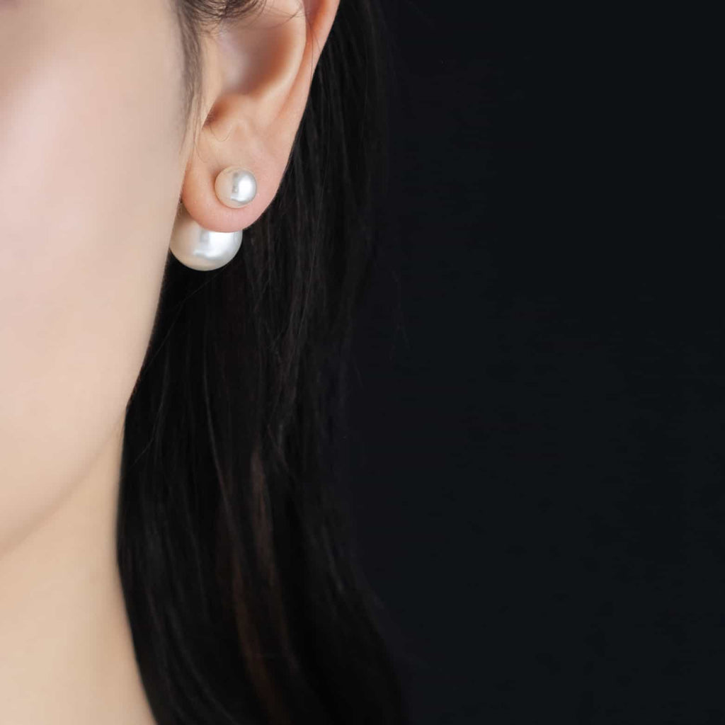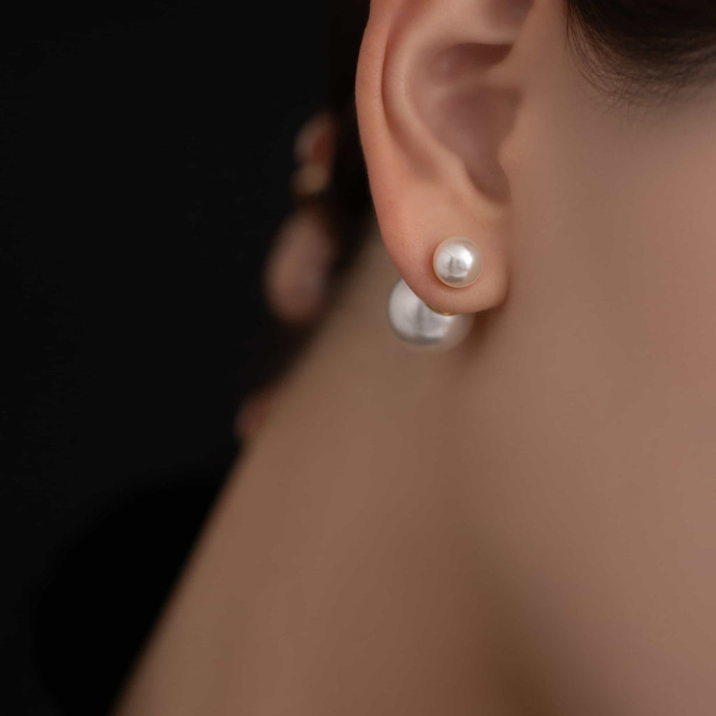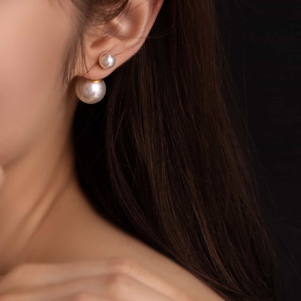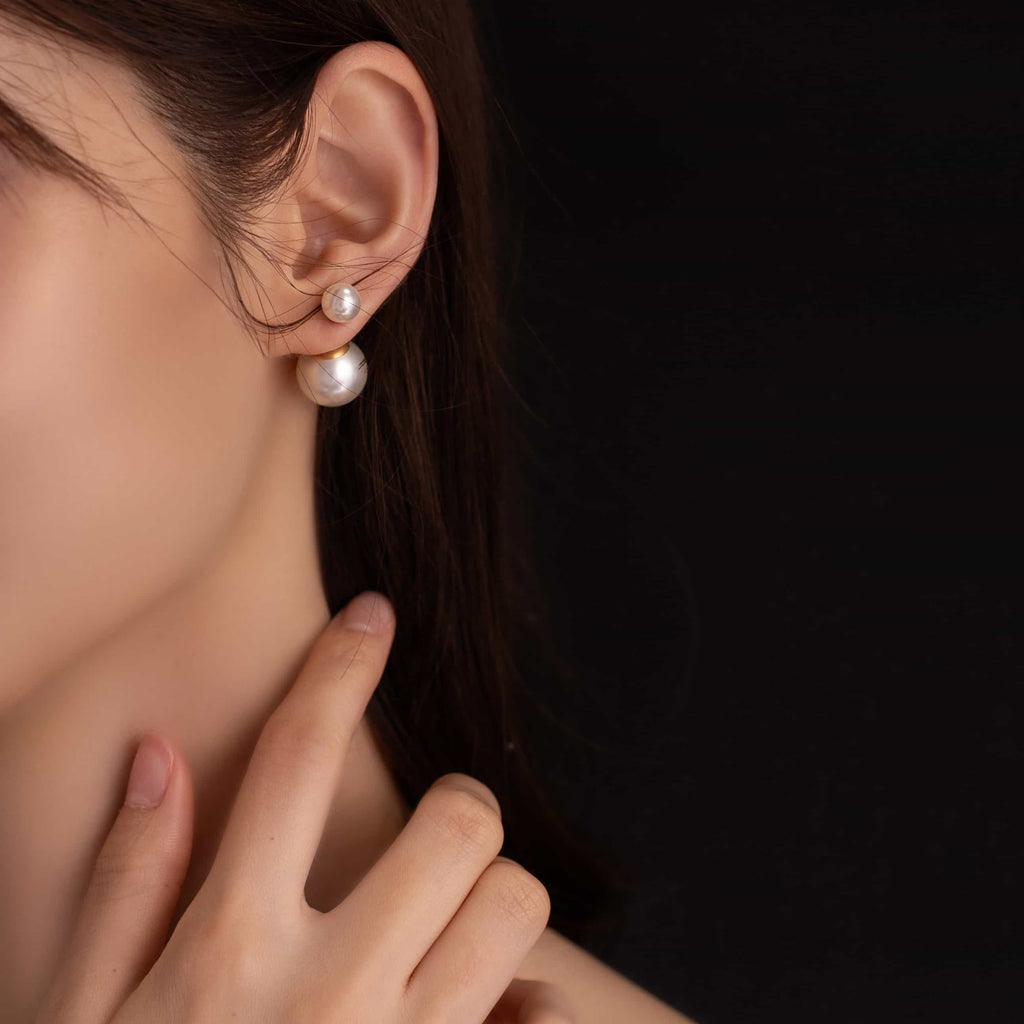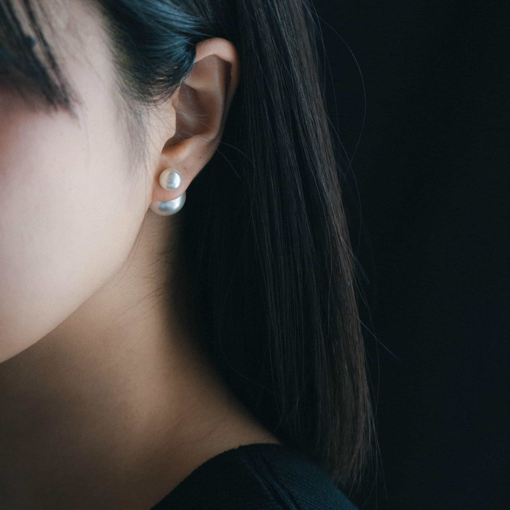 トップだけではなくキャッチもパールのダブルピアスは、呼ばれて振り向くそのすべての瞬間に上品な印象を与えます。