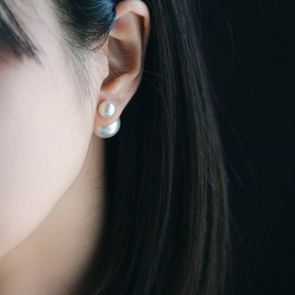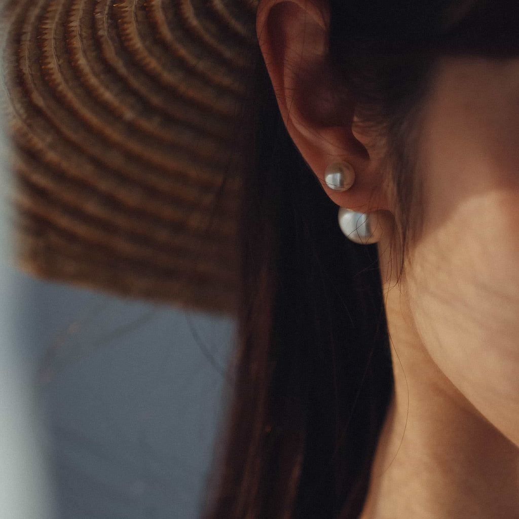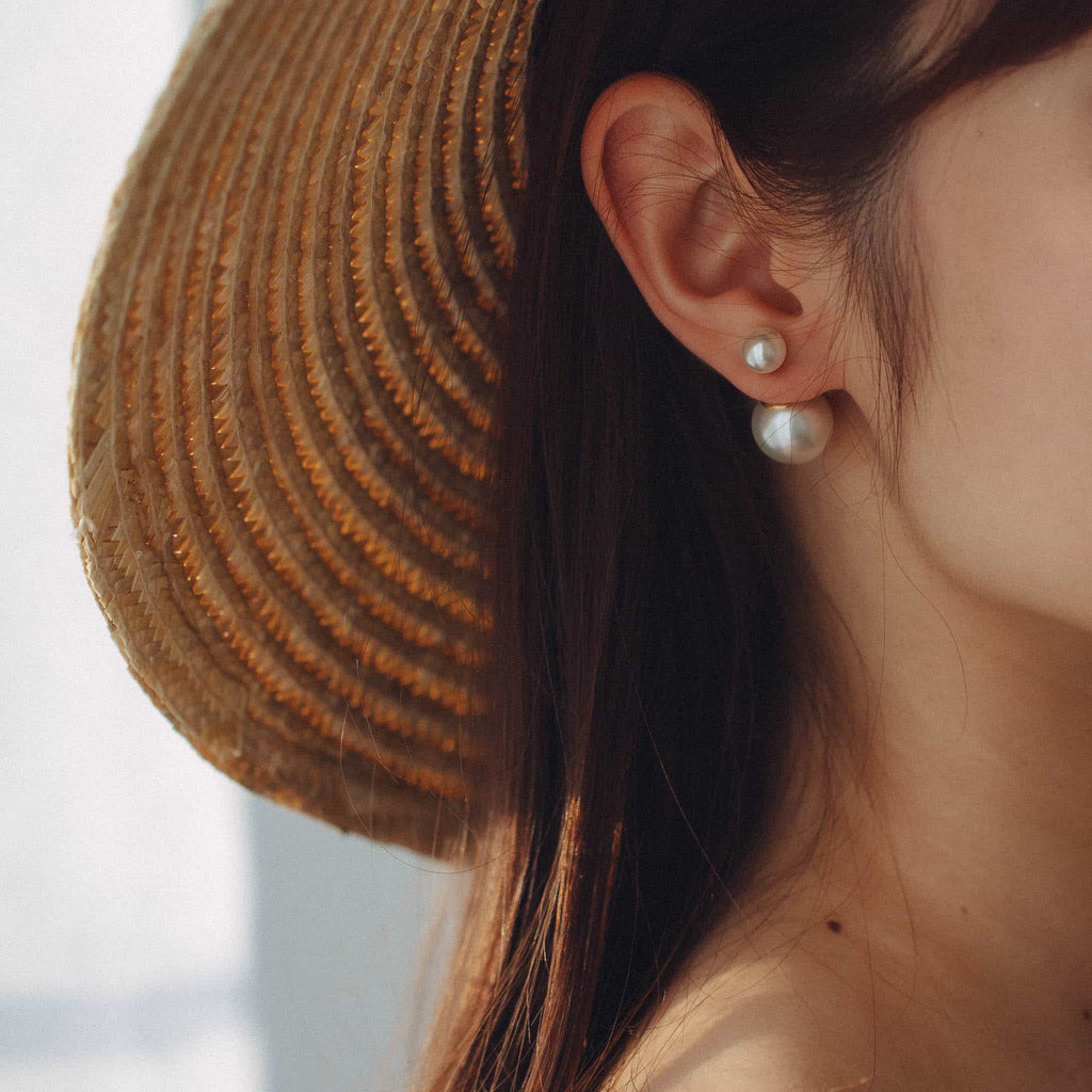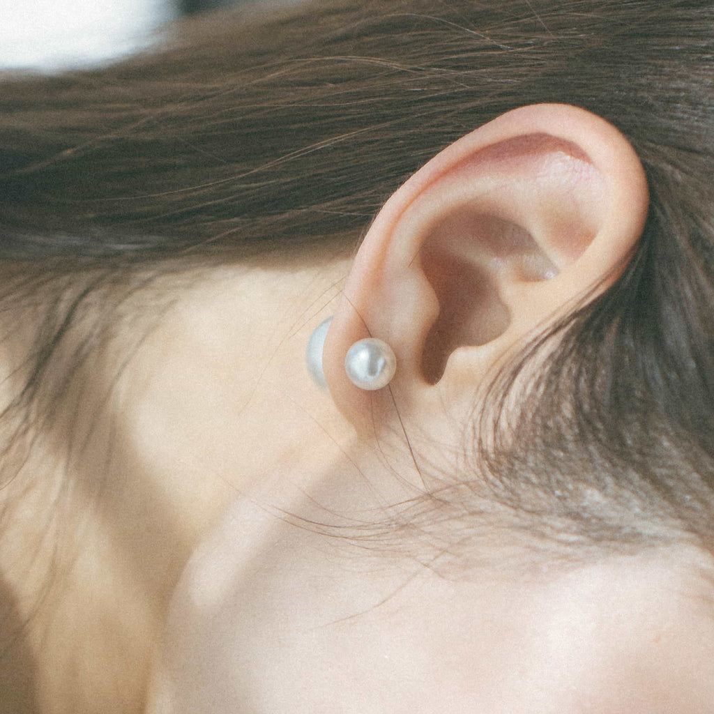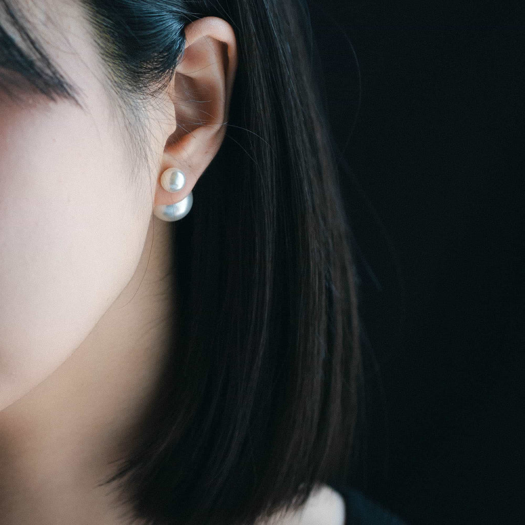 トップだけではなくキャッチもパールのダブルピアスは、呼ばれて振り向くそのすべての瞬間に上品な印象を与えます。