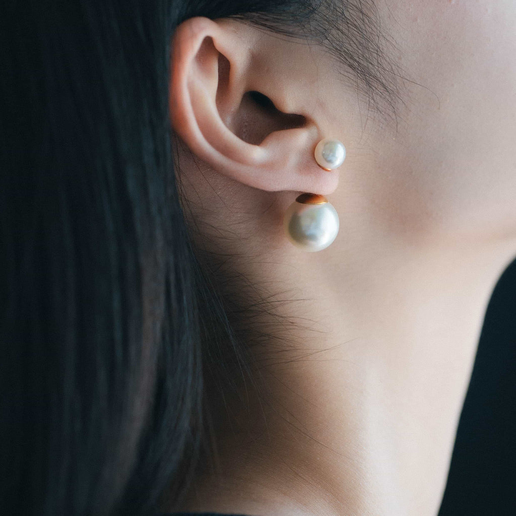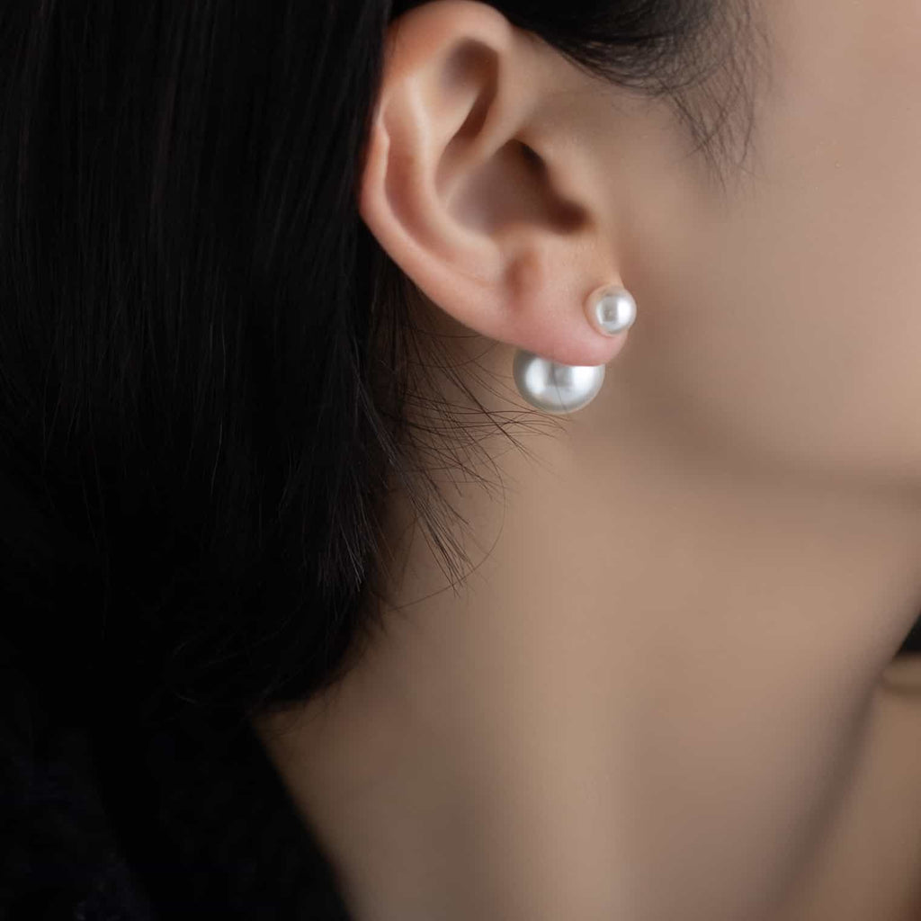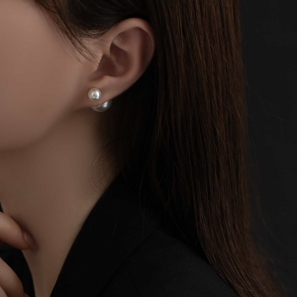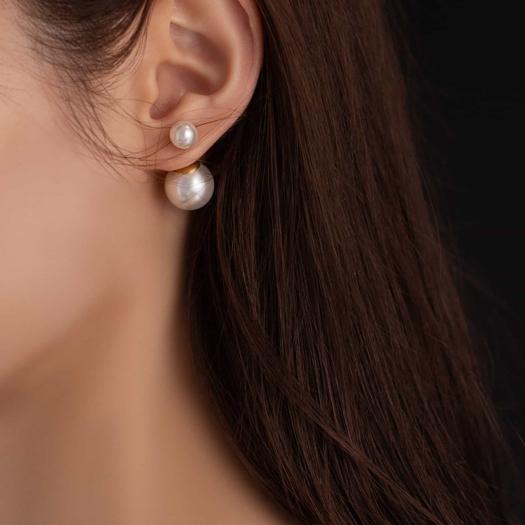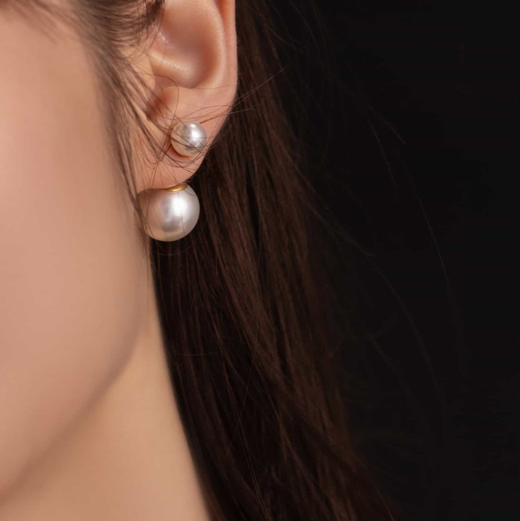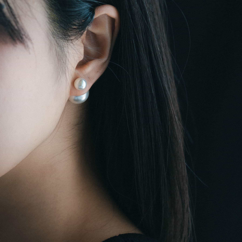 トップだけではなくキャッチもパールのダブルピアスは、呼ばれて振り向くそのすべての瞬間に上品な印象を与えます。