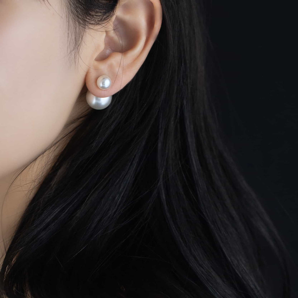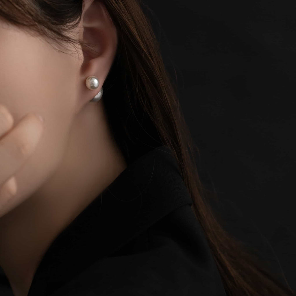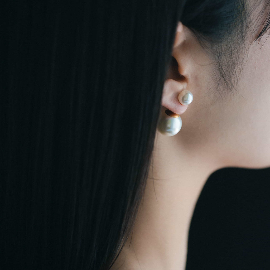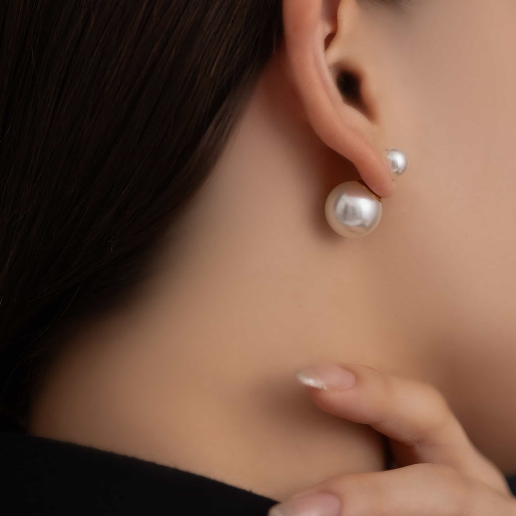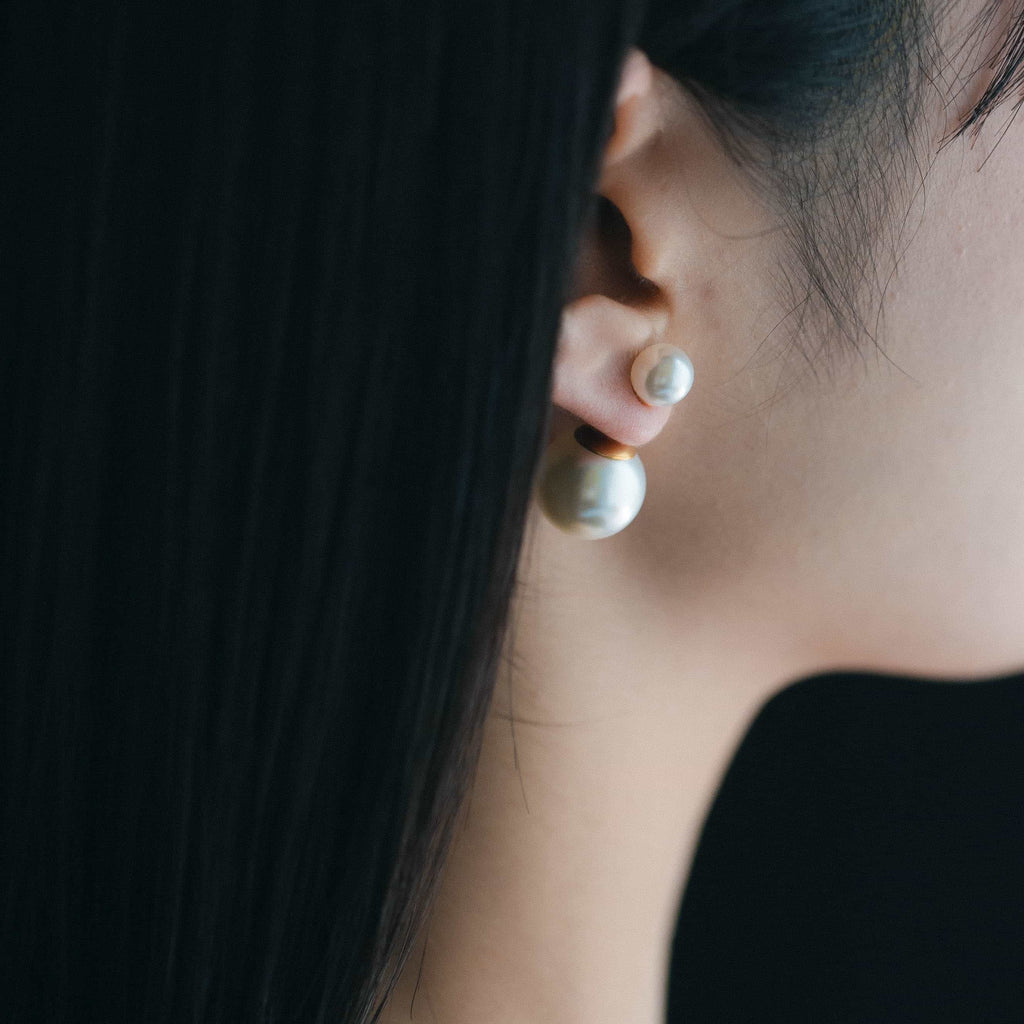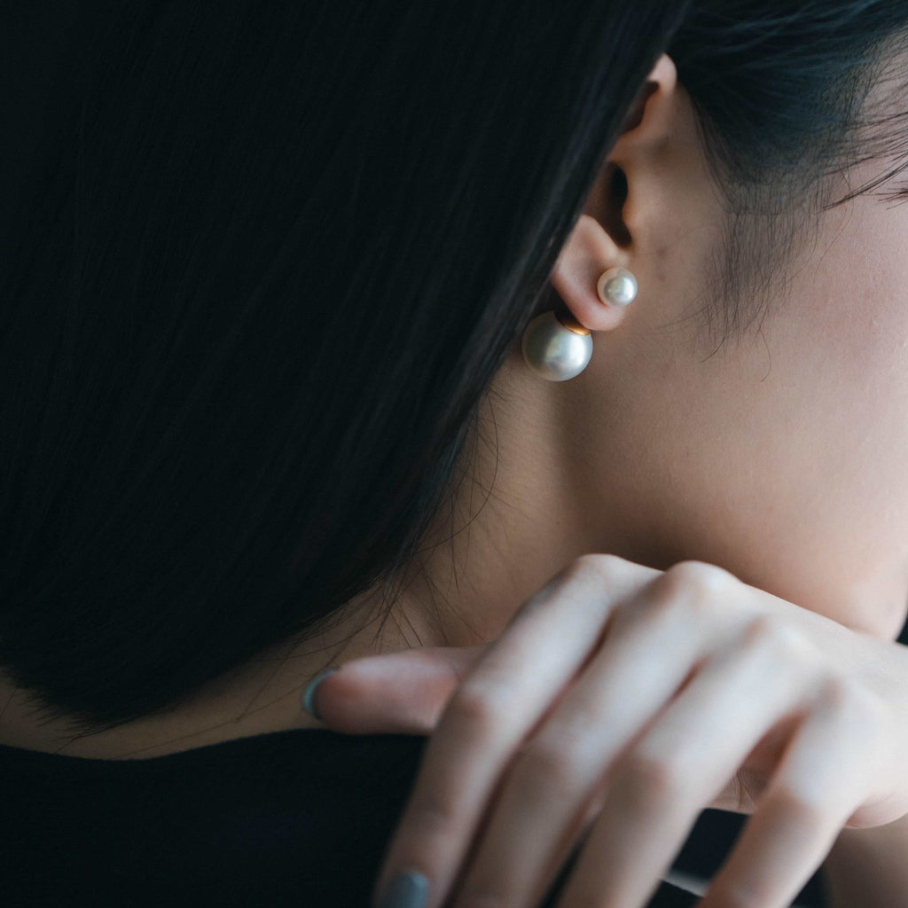 トップだけではなくキャッチもパールのダブルピアスは、呼ばれて振り向くそのすべての瞬間に上品な印象を与えます。