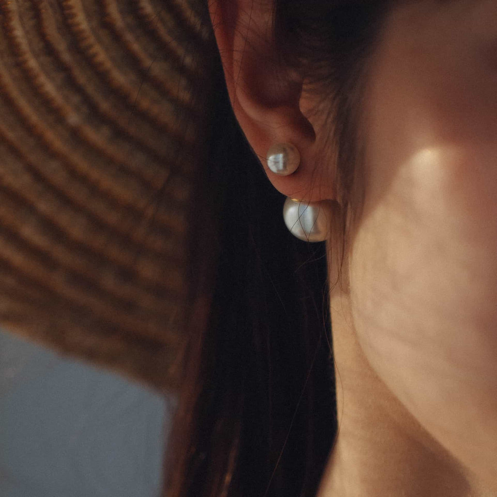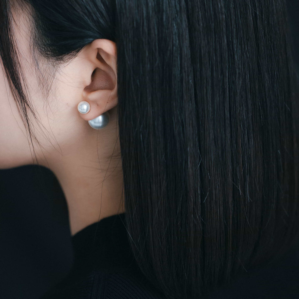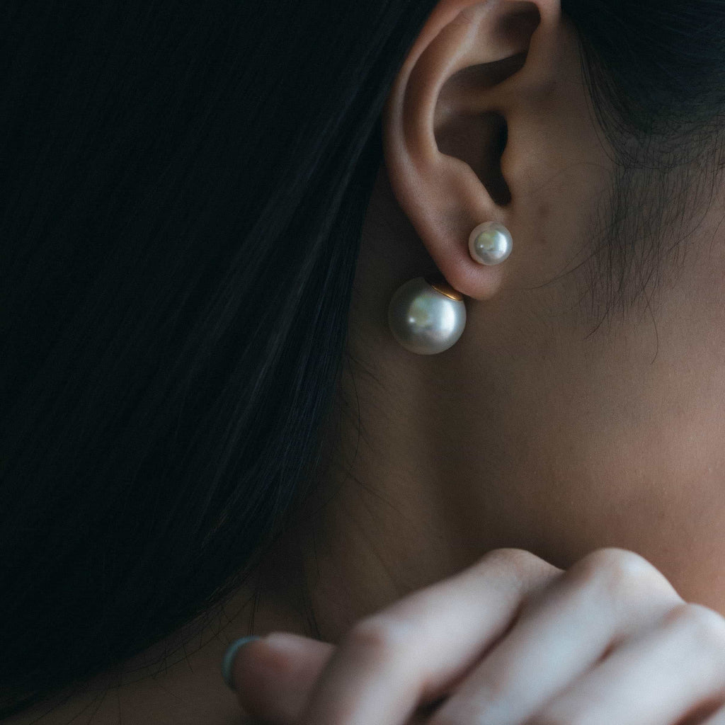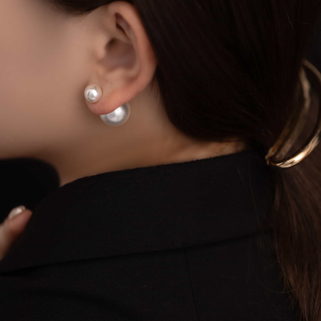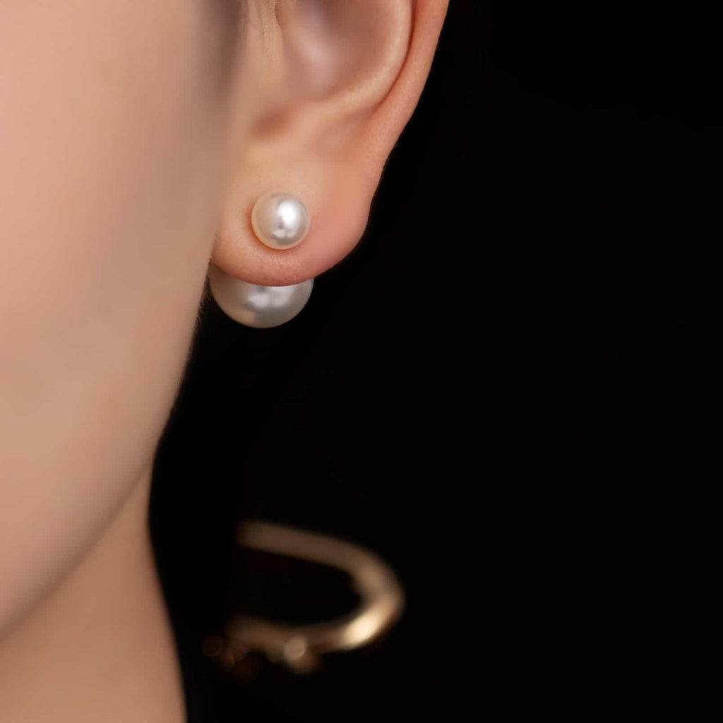 トップだけではなくキャッチもパールのダブルピアスは、呼ばれて振り向くそのすべての瞬間に上品な印象を与えます。