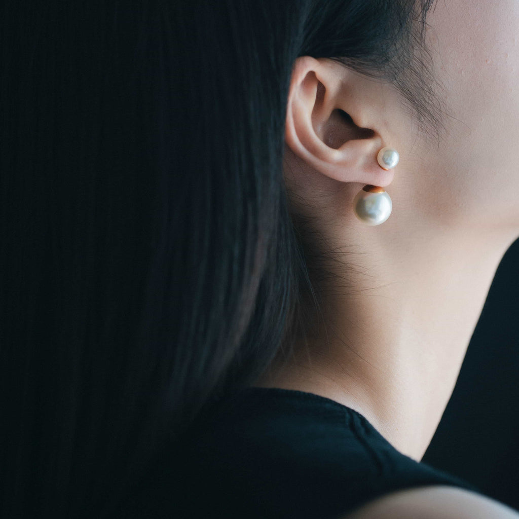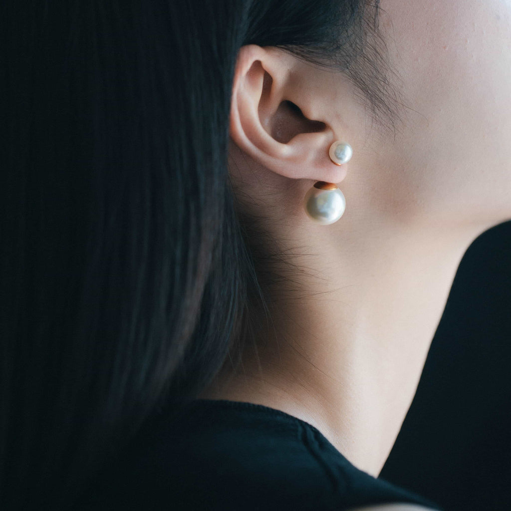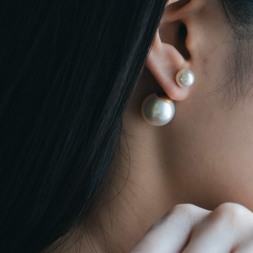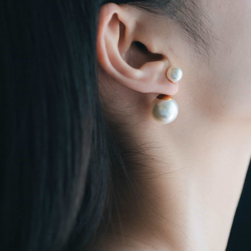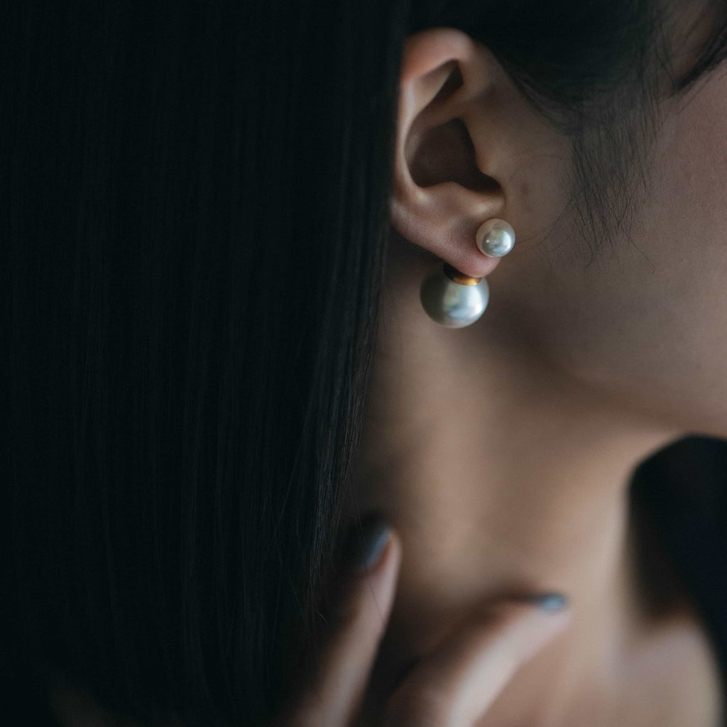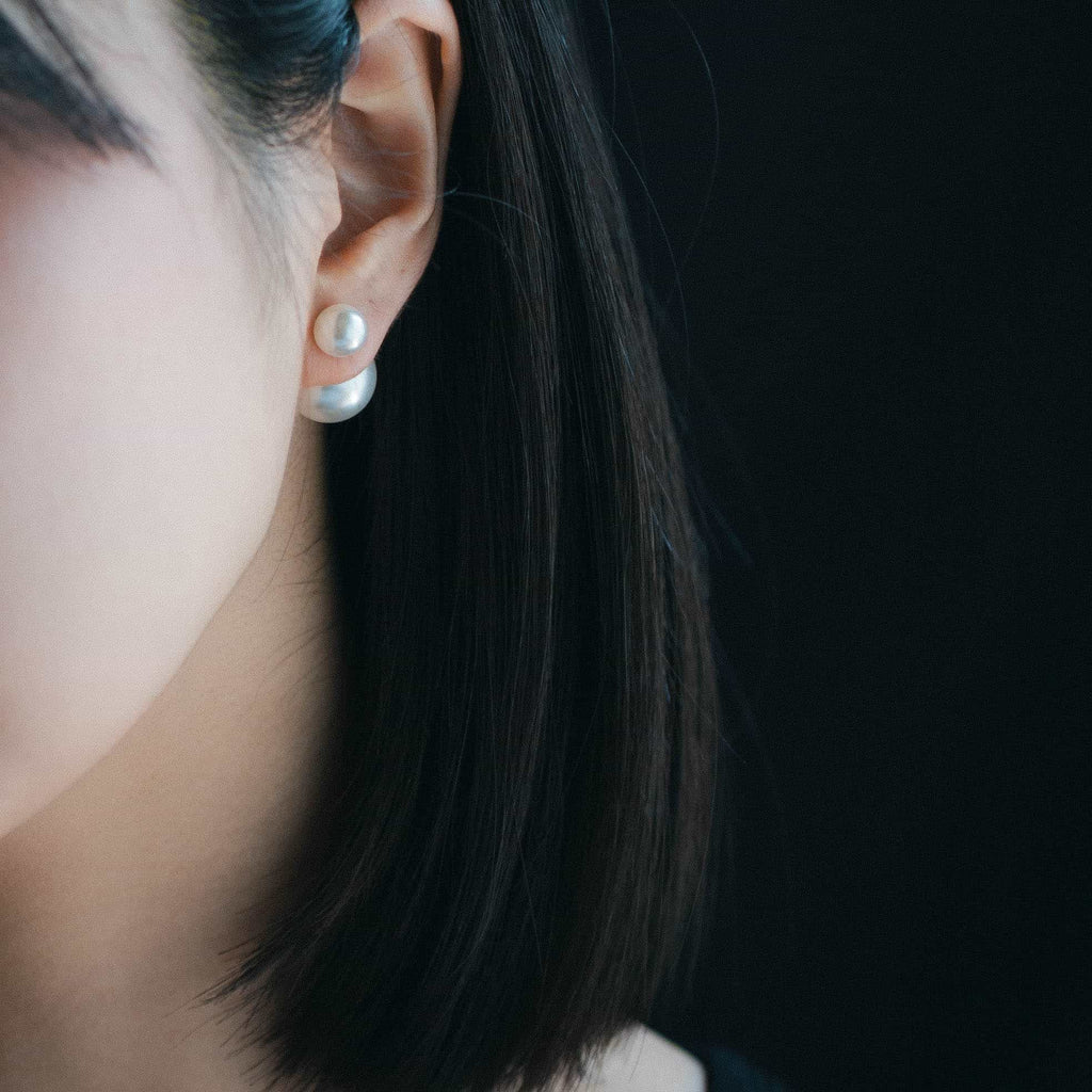 トップだけではなくキャッチもパールのダブルピアスは、呼ばれて振り向くそのすべての瞬間に上品な印象を与えます。