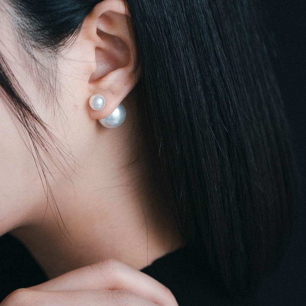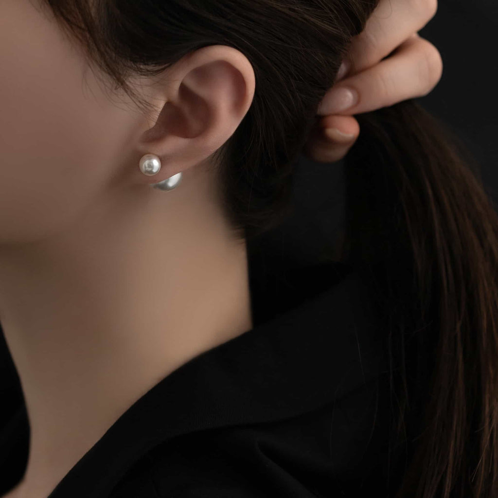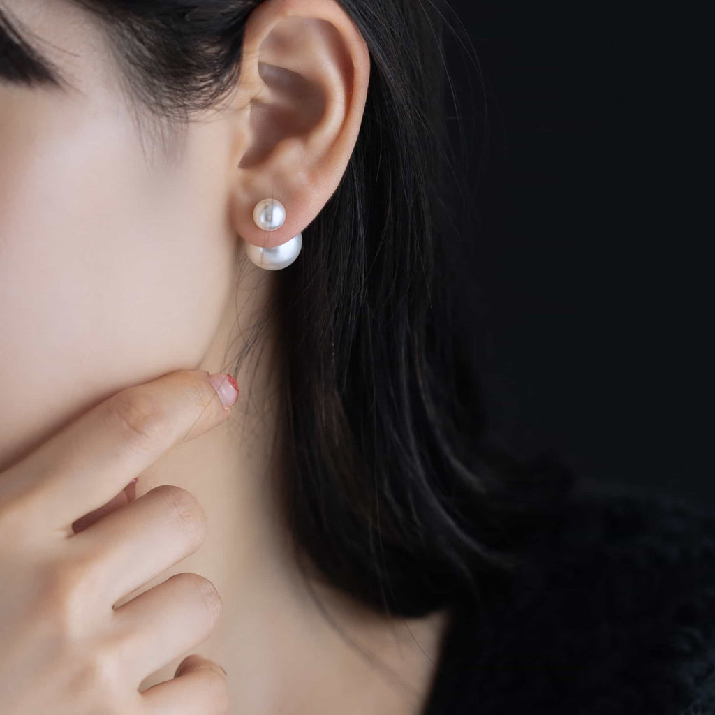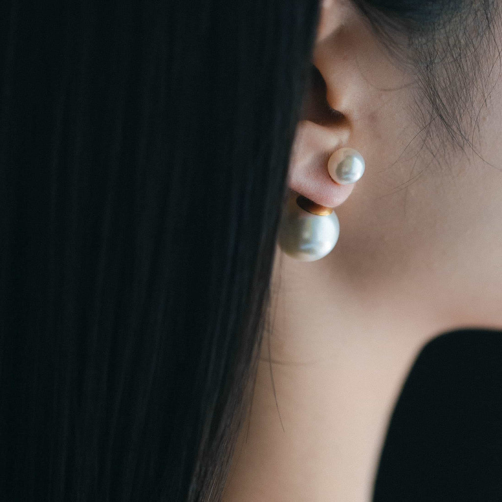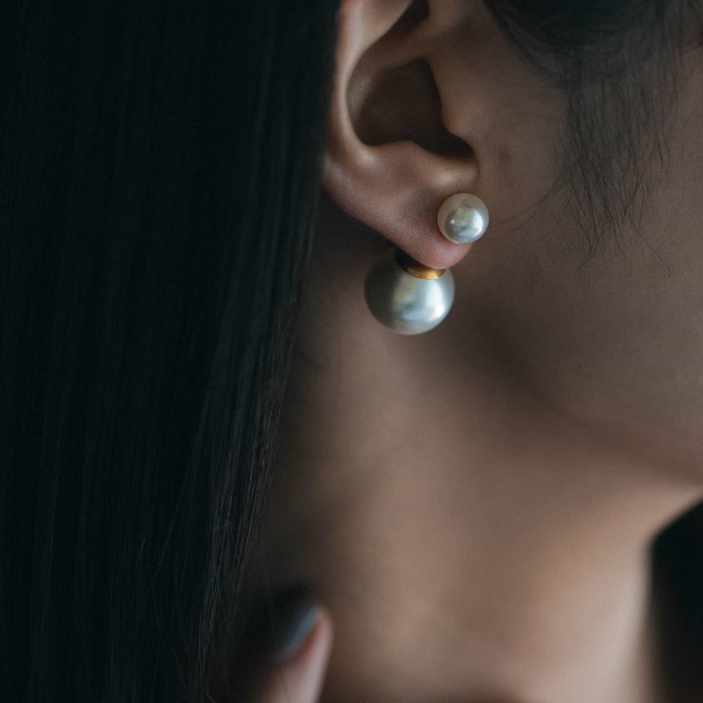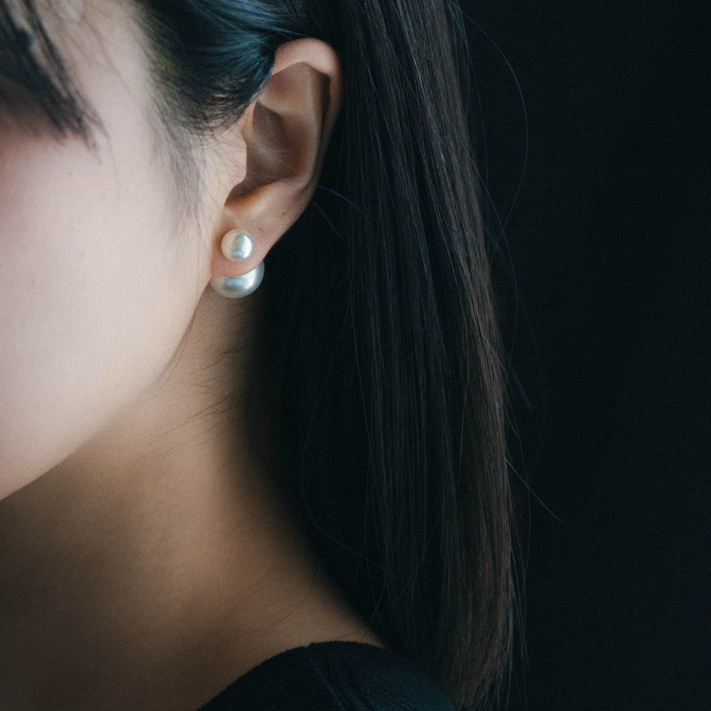 トップだけではなくキャッチもパールのダブルピアスは、呼ばれて振り向くそのすべての瞬間に上品な印象を与えます。