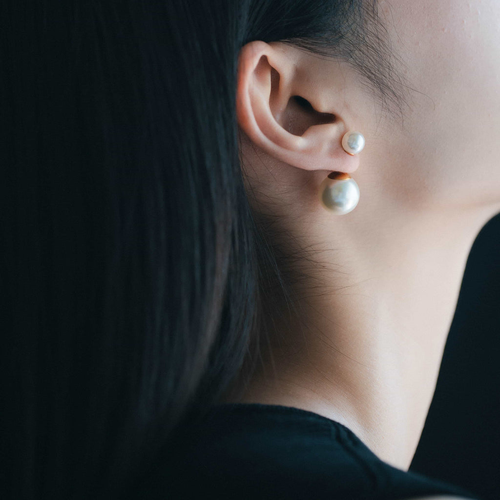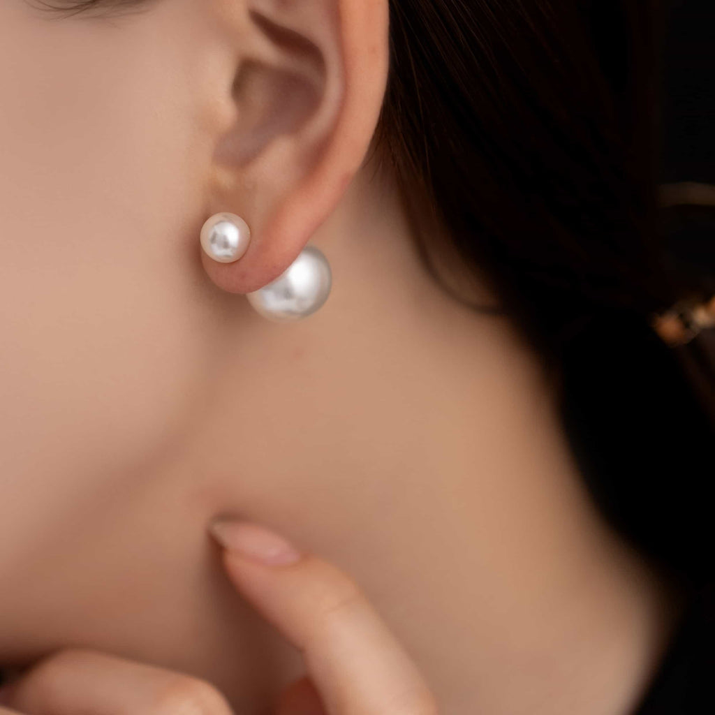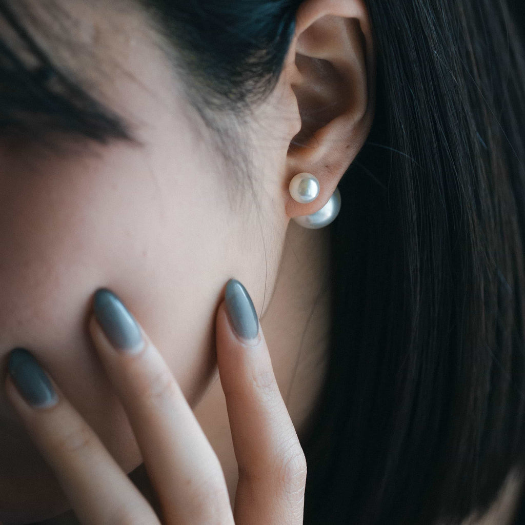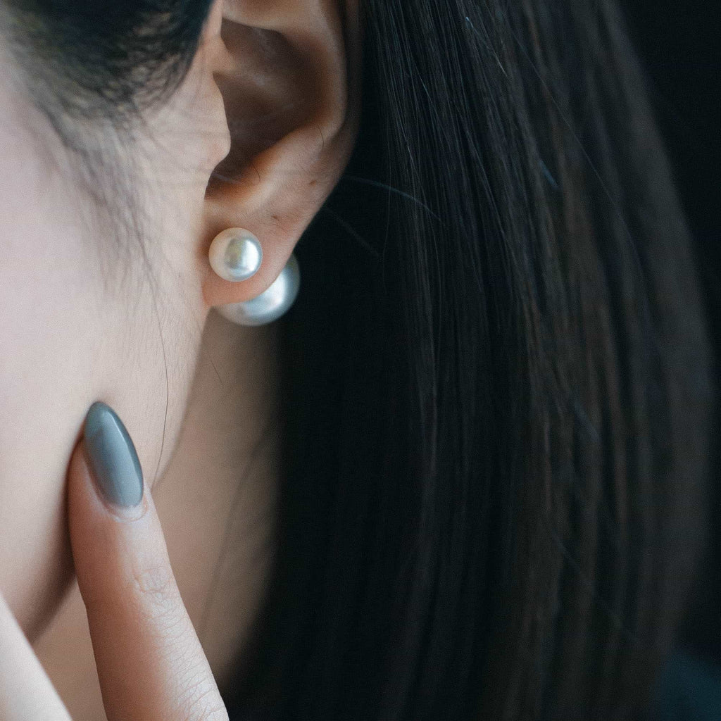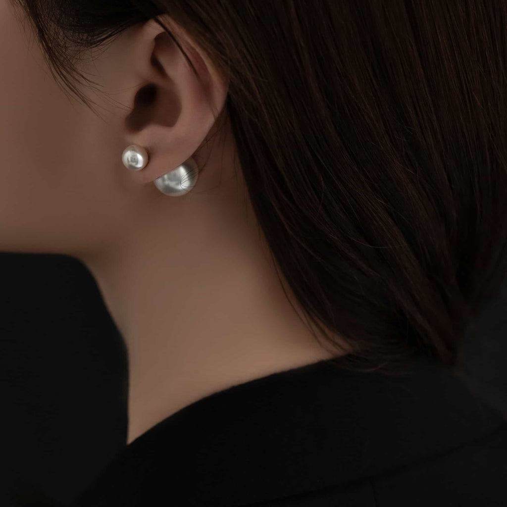 トップだけではなくキャッチもパールのダブルピアスは、呼ばれて振り向くそのすべての瞬間に上品な印象を与えます。