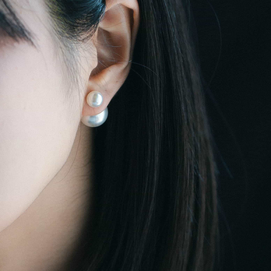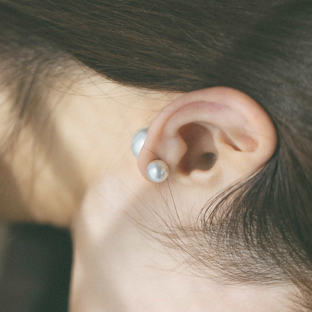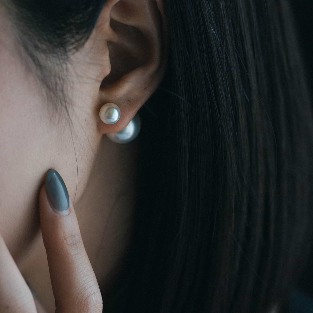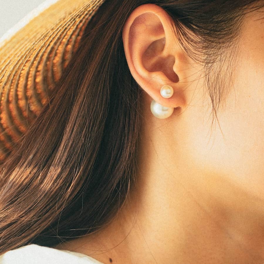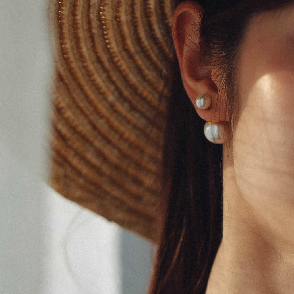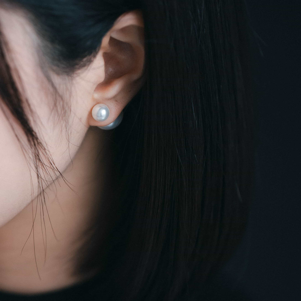 トップだけではなくキャッチもパールのダブルピアスは、呼ばれて振り向くそのすべての瞬間に上品な印象を与えます。