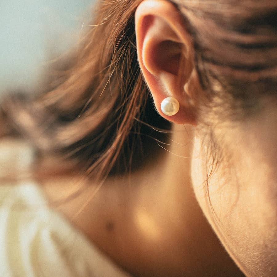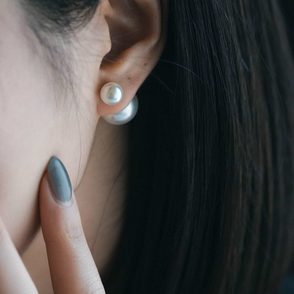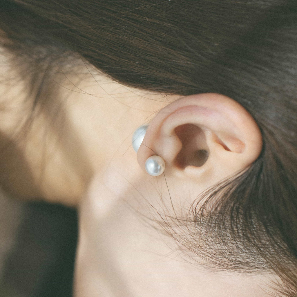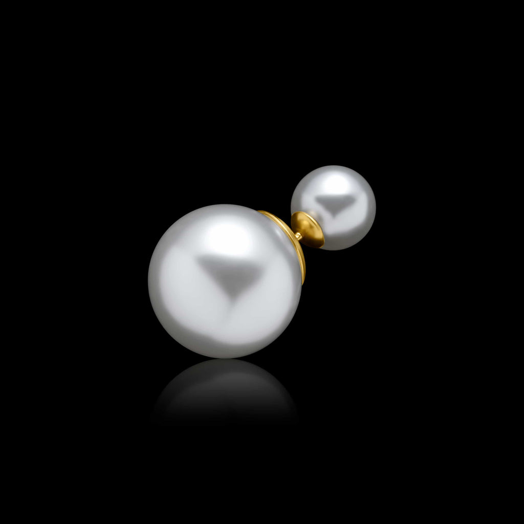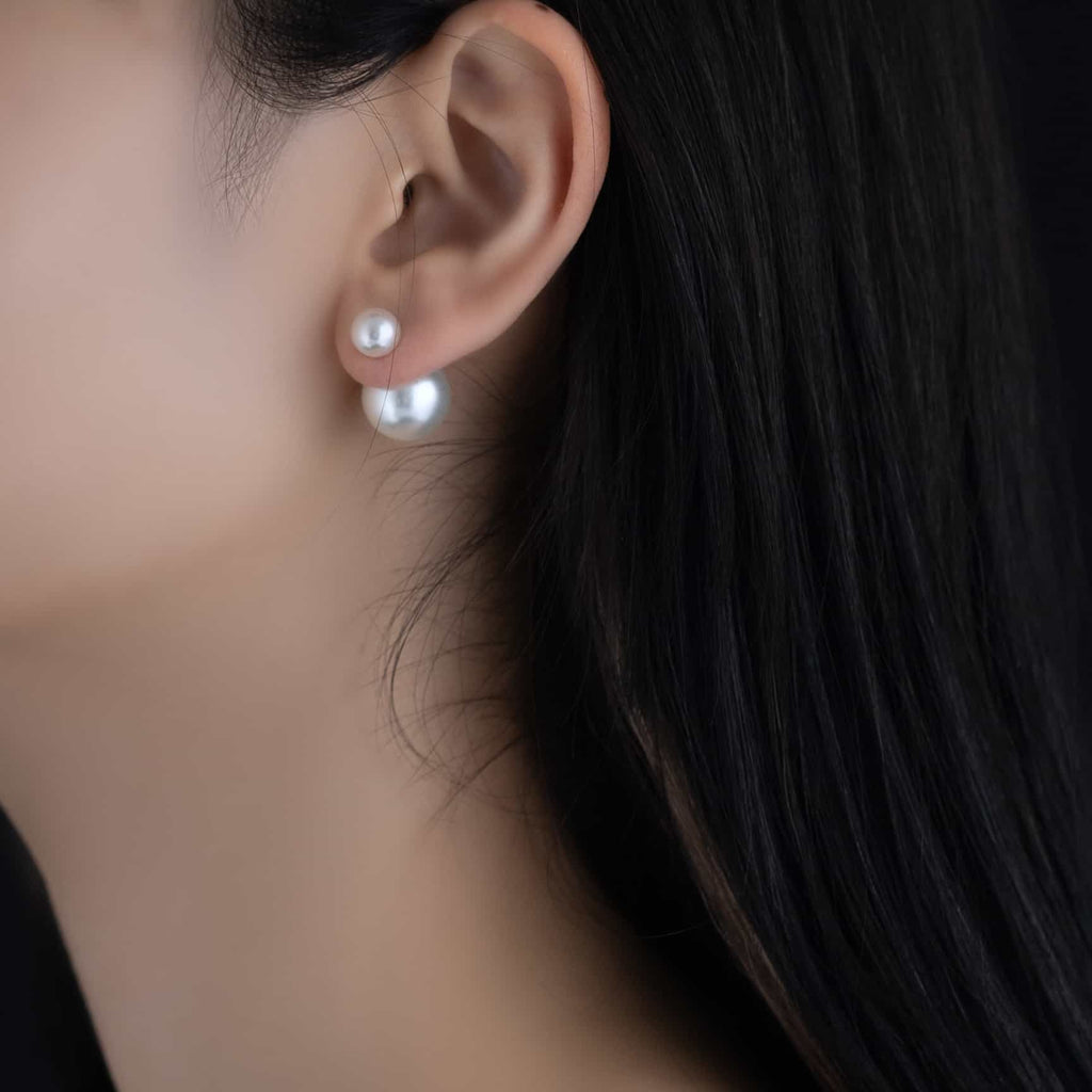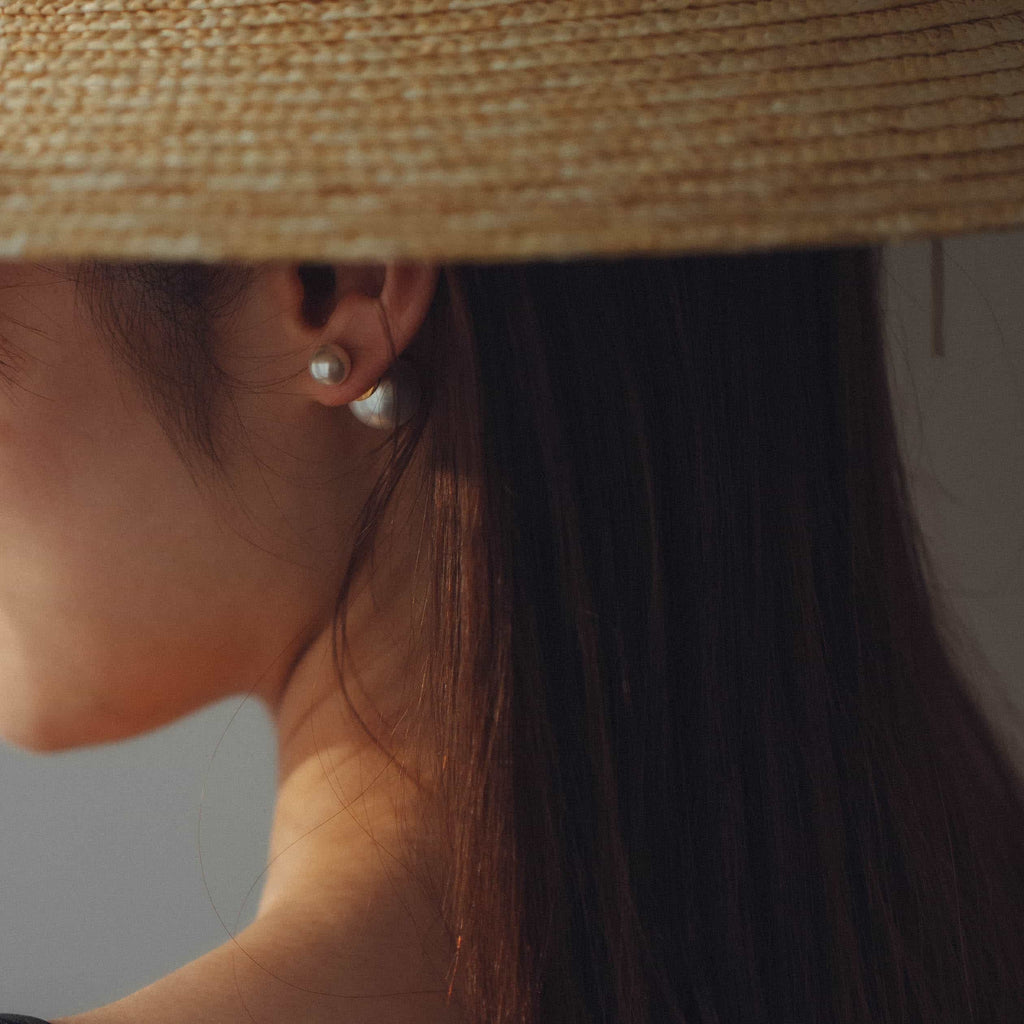 トップだけではなくキャッチもパールのダブルピアスは、呼ばれて振り向くそのすべての瞬間に上品な印象を与えます。