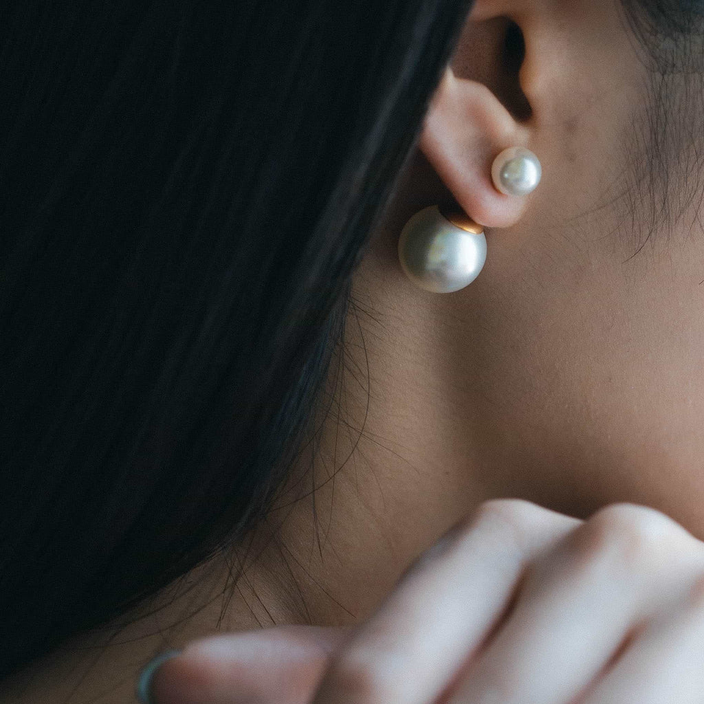 クラシックな美しさを持つダブルパールピアス。
