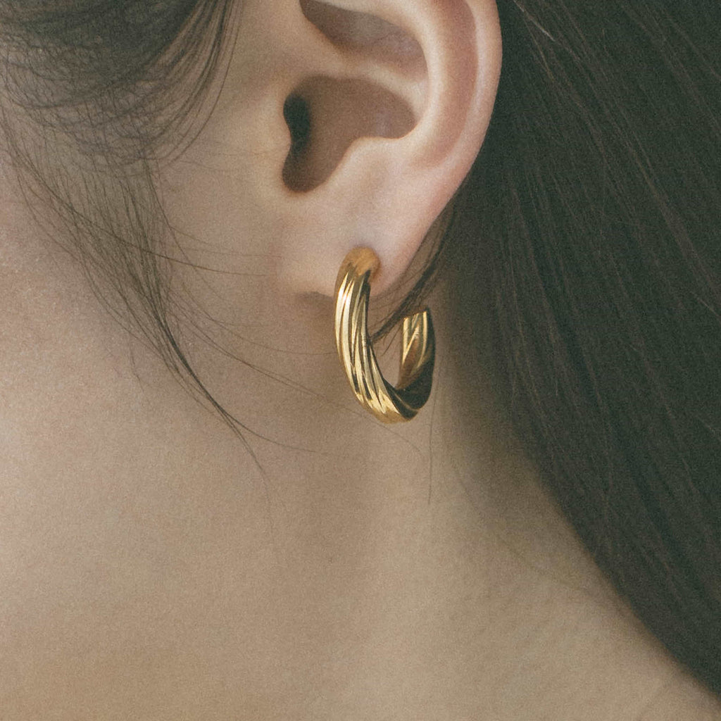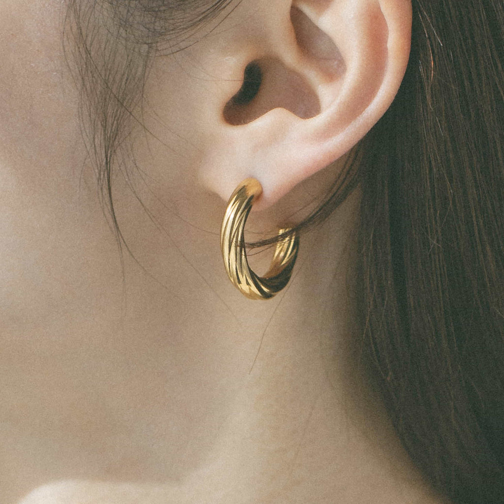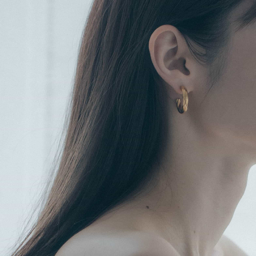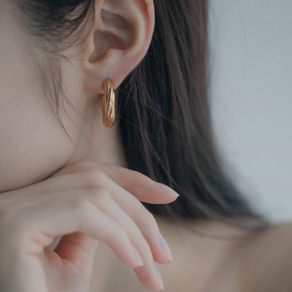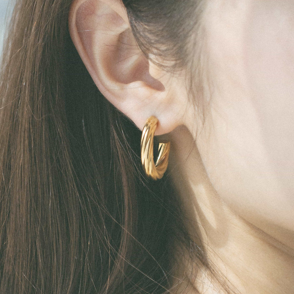 ツイストデザインが耳元に立体感を加え、洗練された印象を与えます。