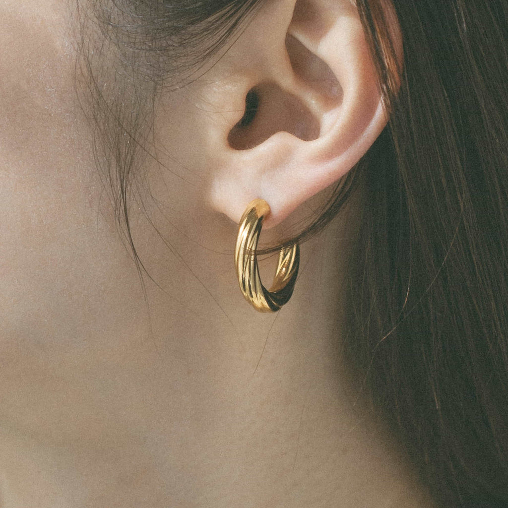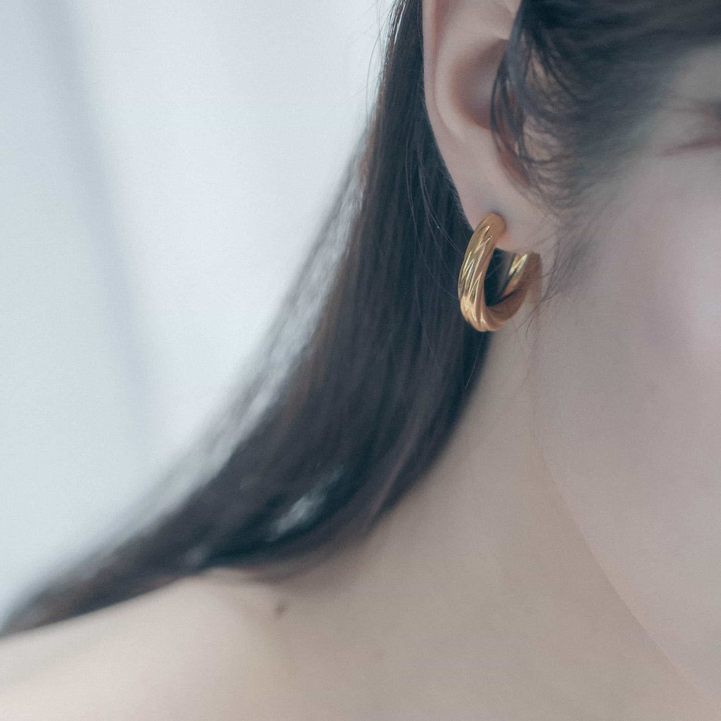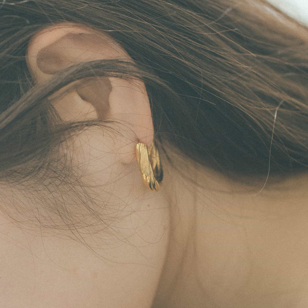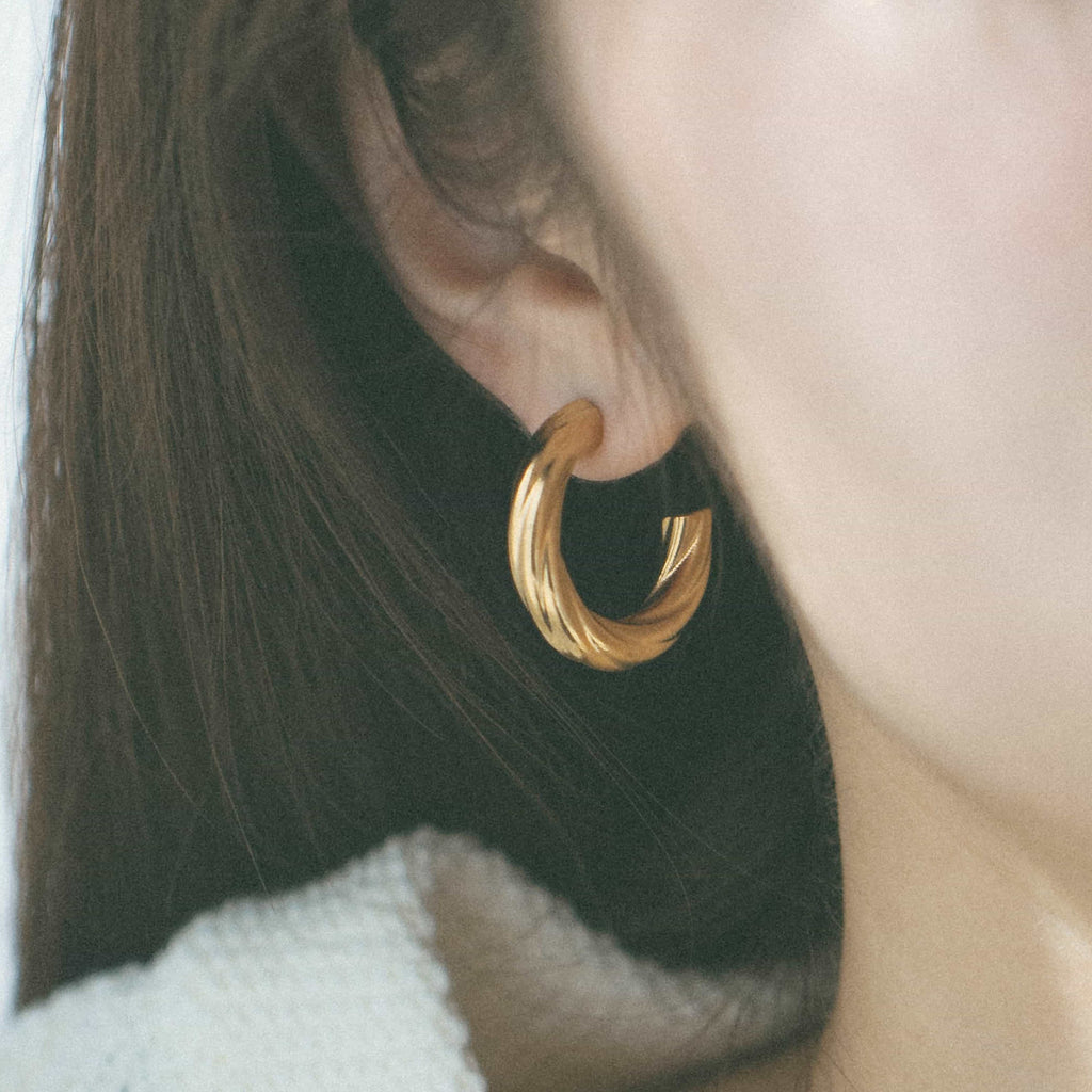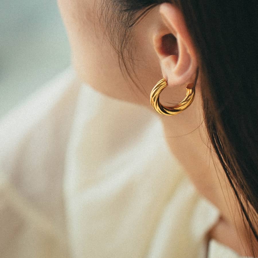 ツイストデザインが耳元に立体感を加え、洗練された印象を与えます。
