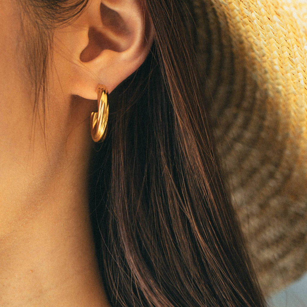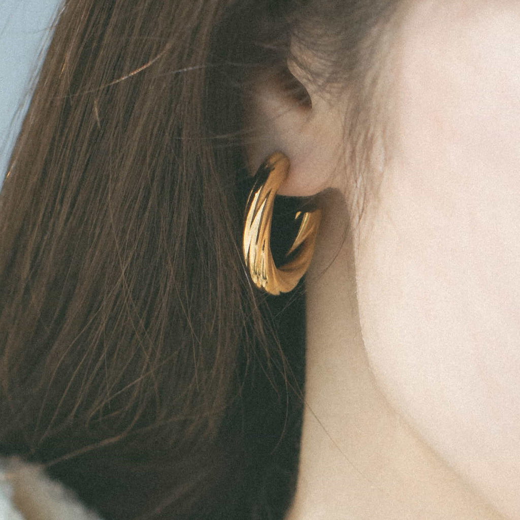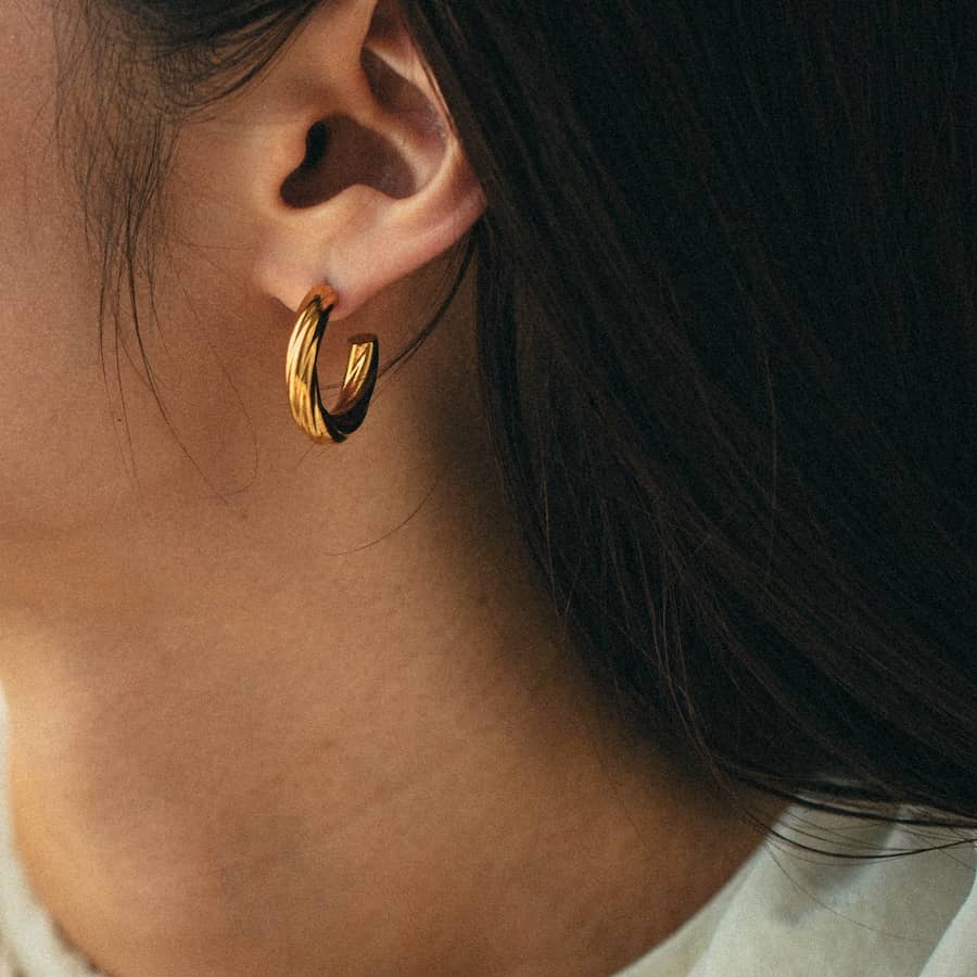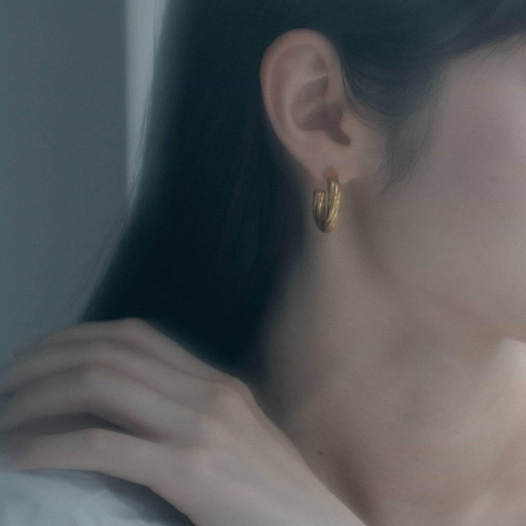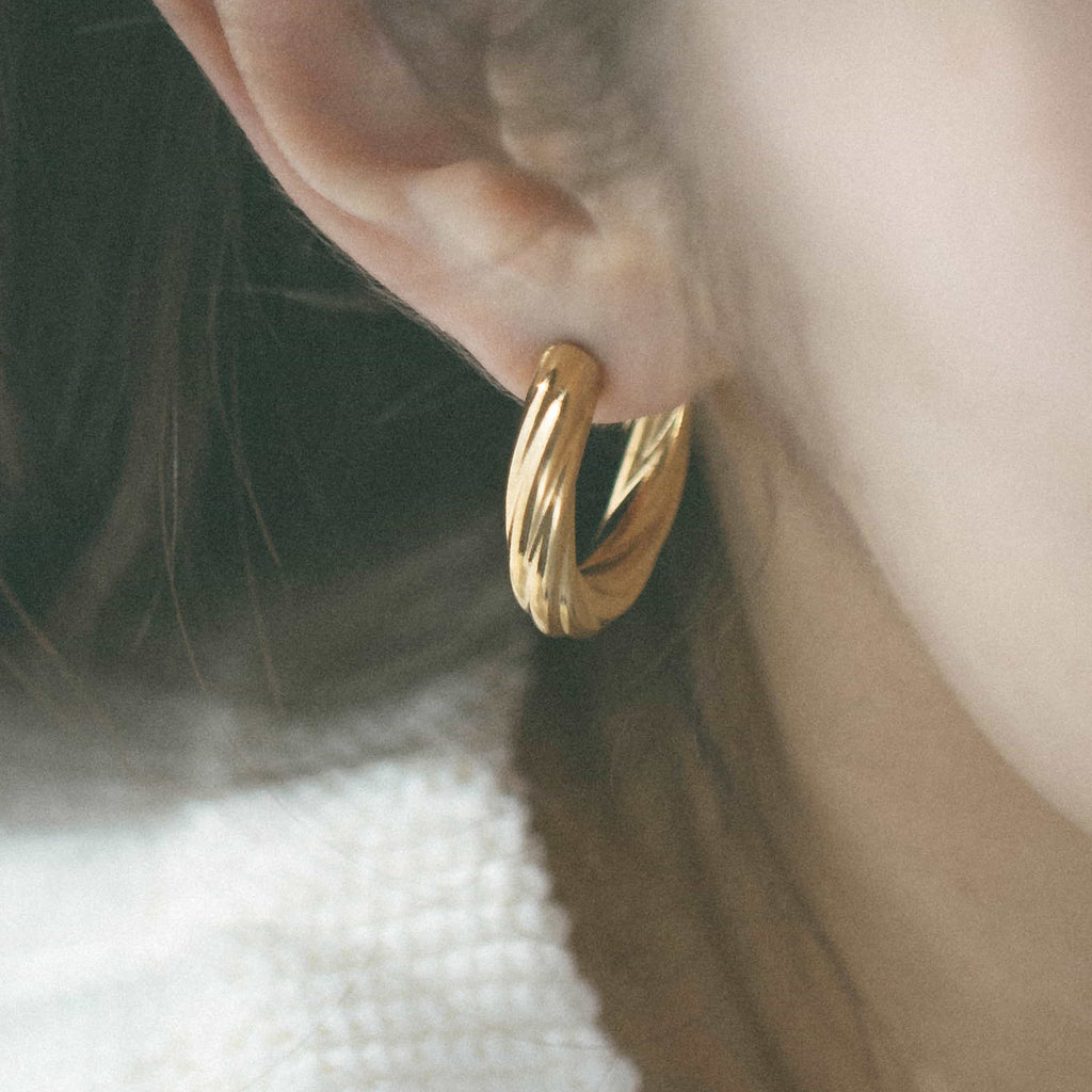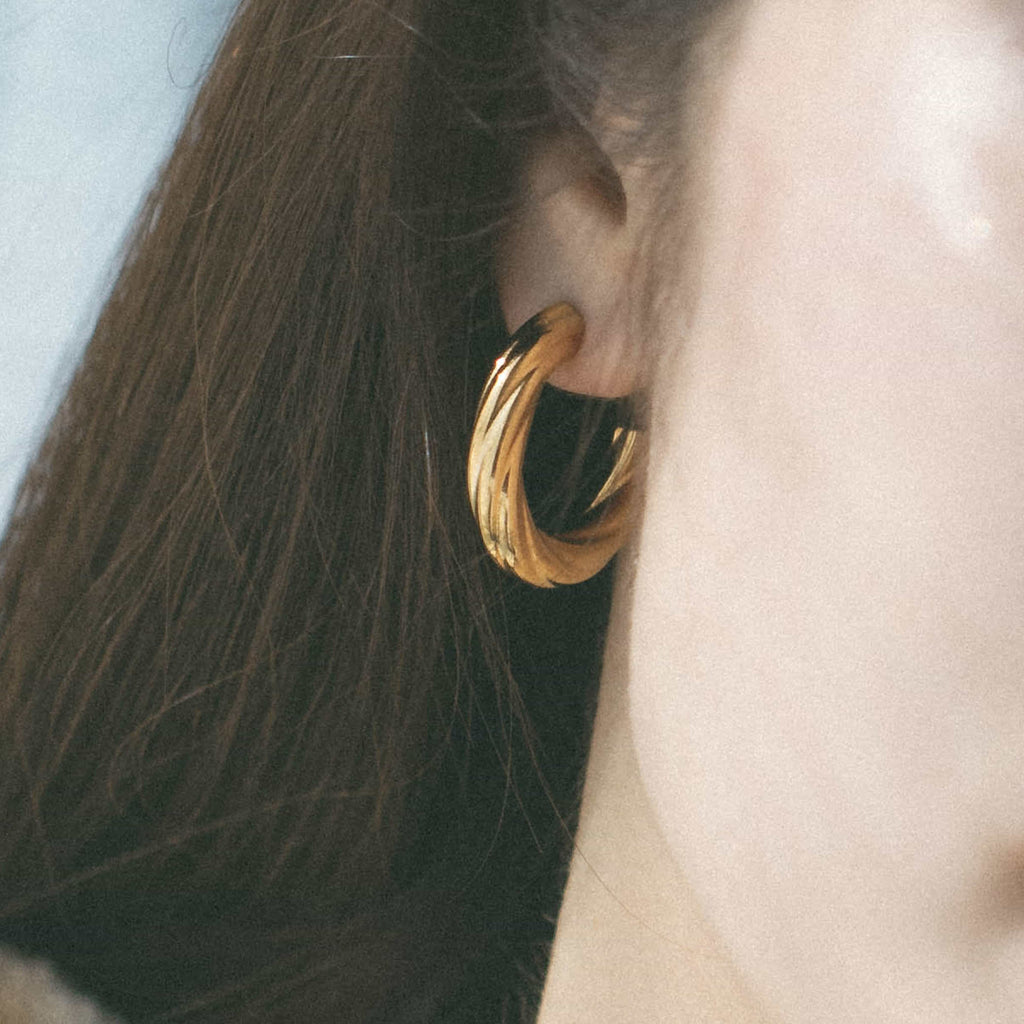 ツイストデザインが耳元に立体感を加え、洗練された印象を与えます。