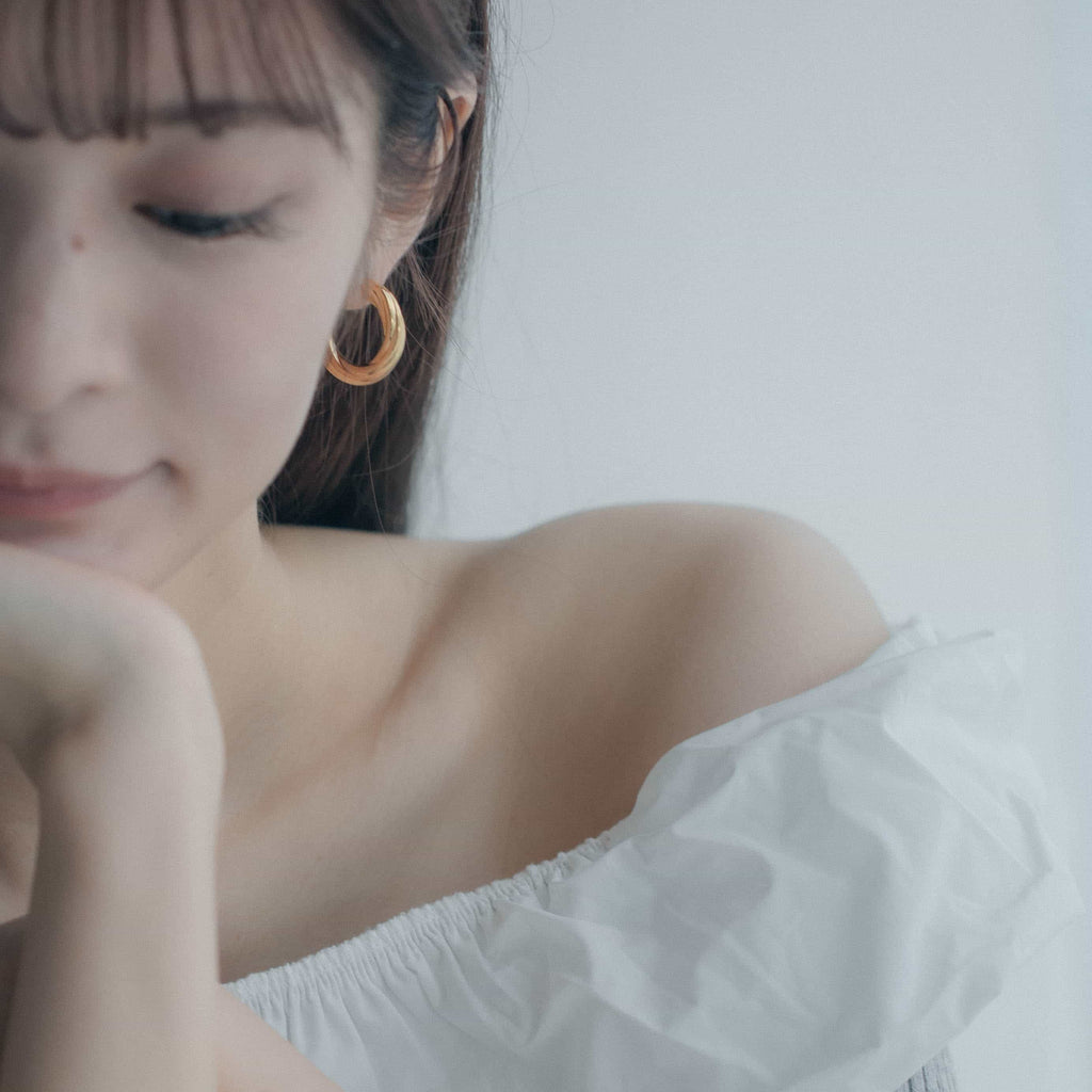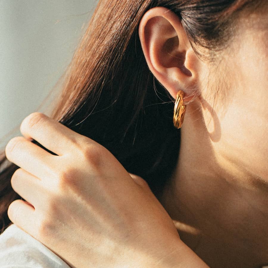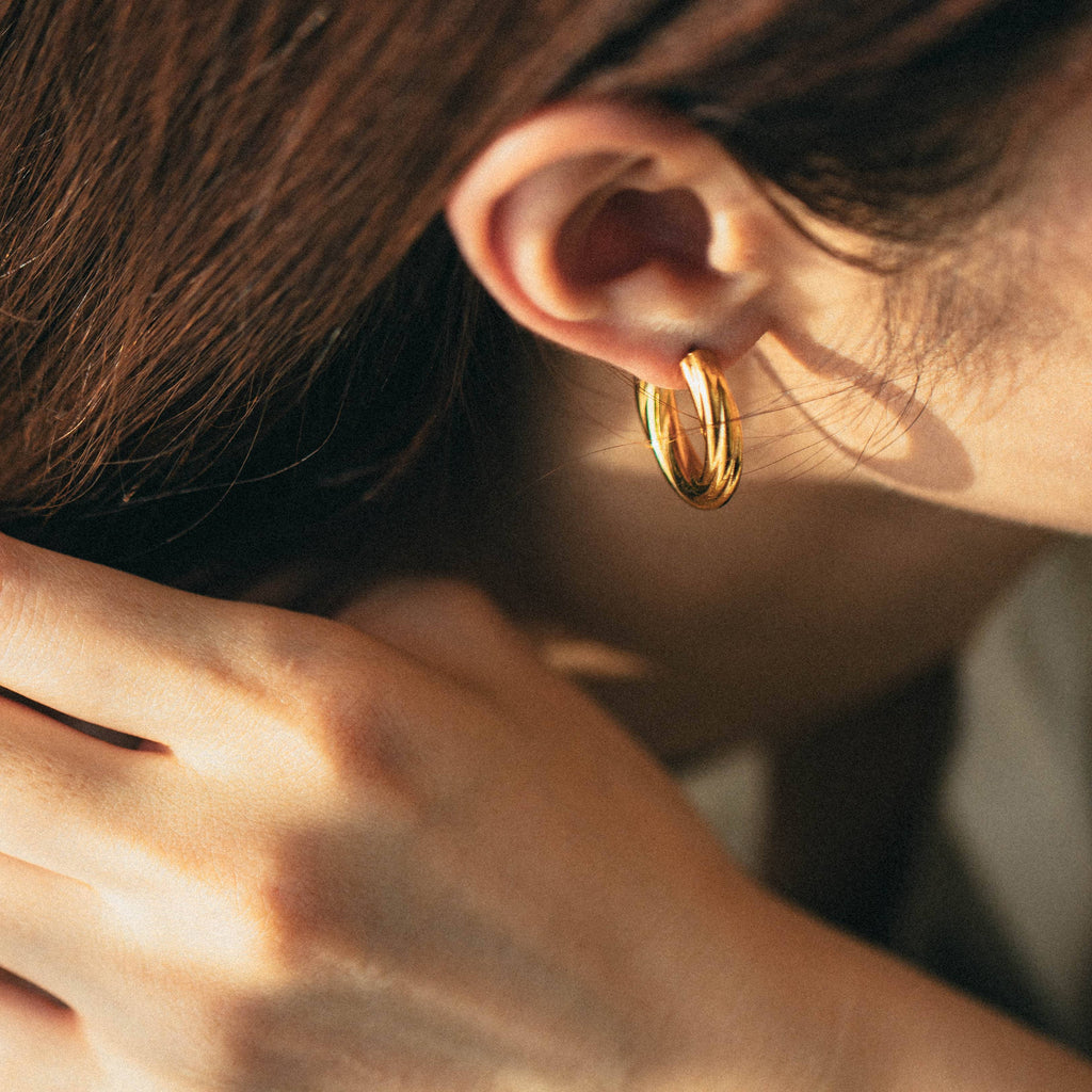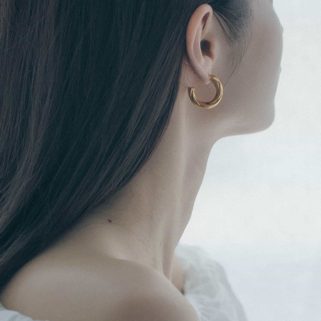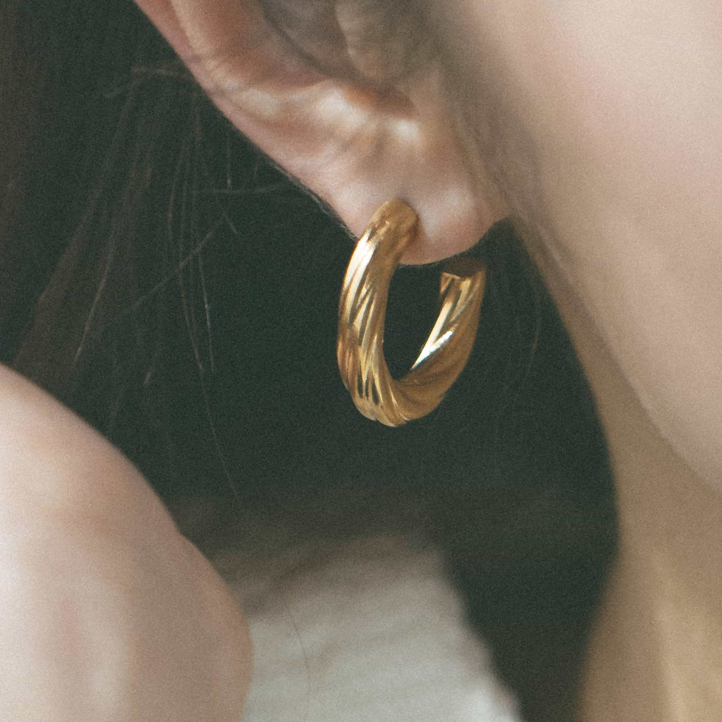 ツイストデザインが耳元に立体感を加え、洗練された印象を与えます。