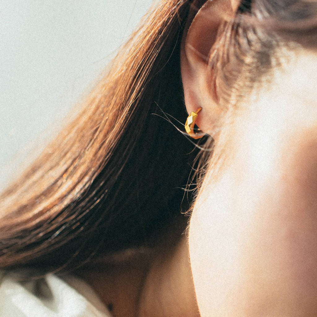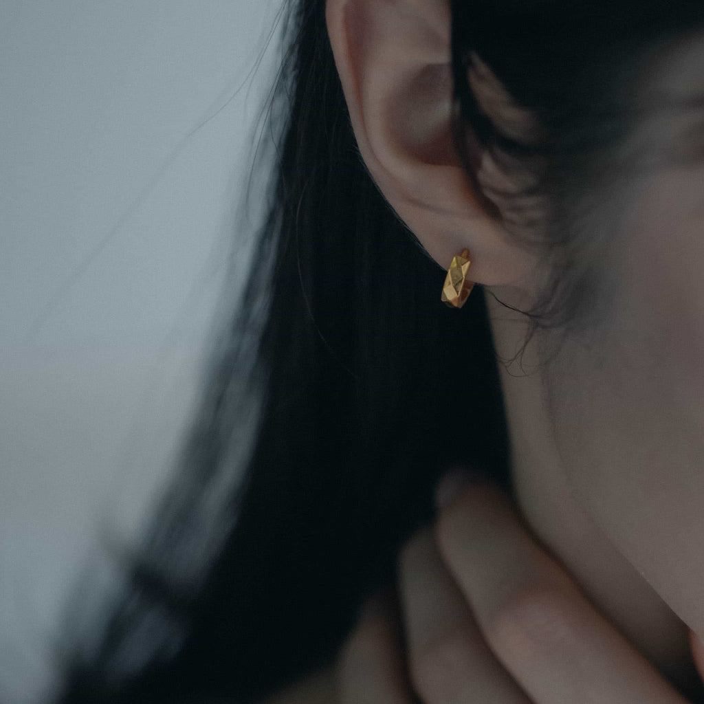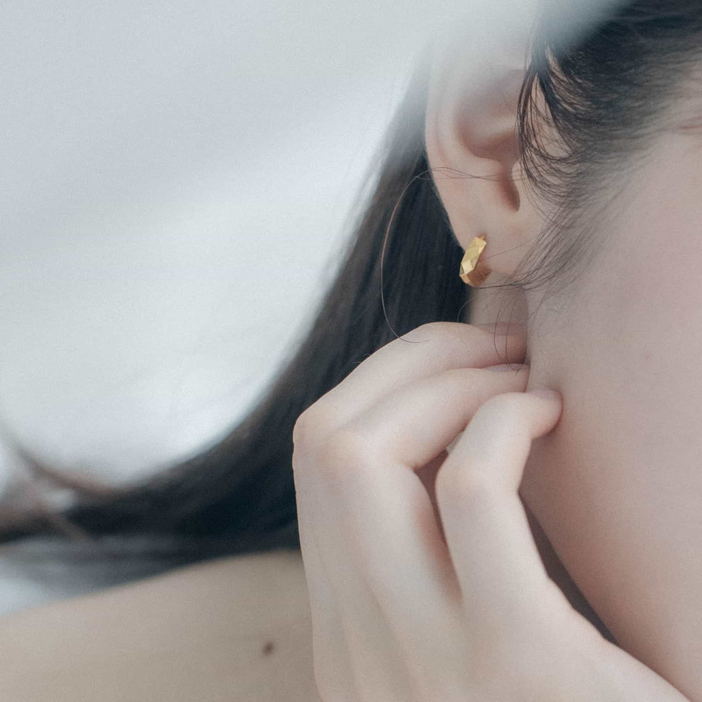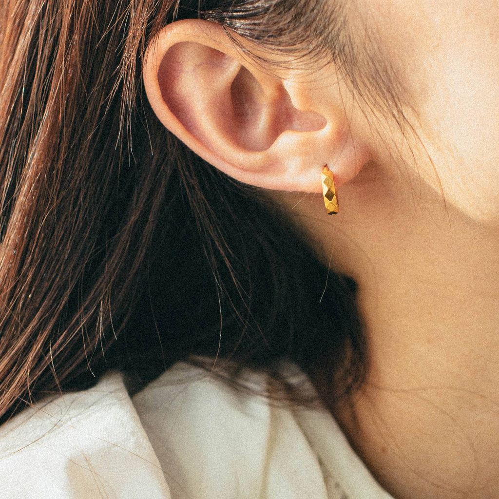 - デザインと形状:キルティングの模様が施されたフープピアスは、シンプルながらも視覚的に印象的です。クリーンなラインと立体的なディテールが耳元を華やかに彩ります。